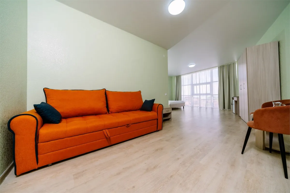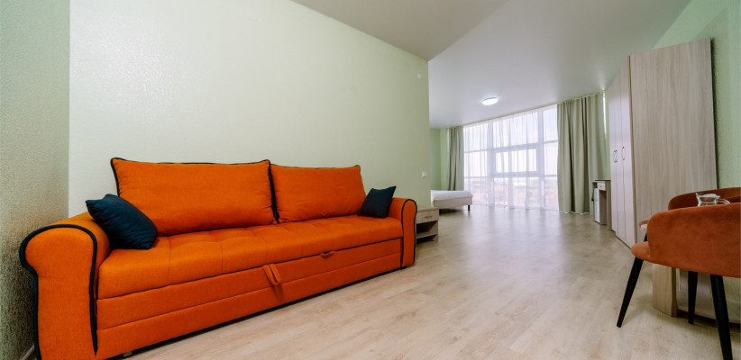 28 м2, спальня, гостиная, двуспальная кровать, диван-кровать, кресло-кровать, балкон. Количество гостей: 5