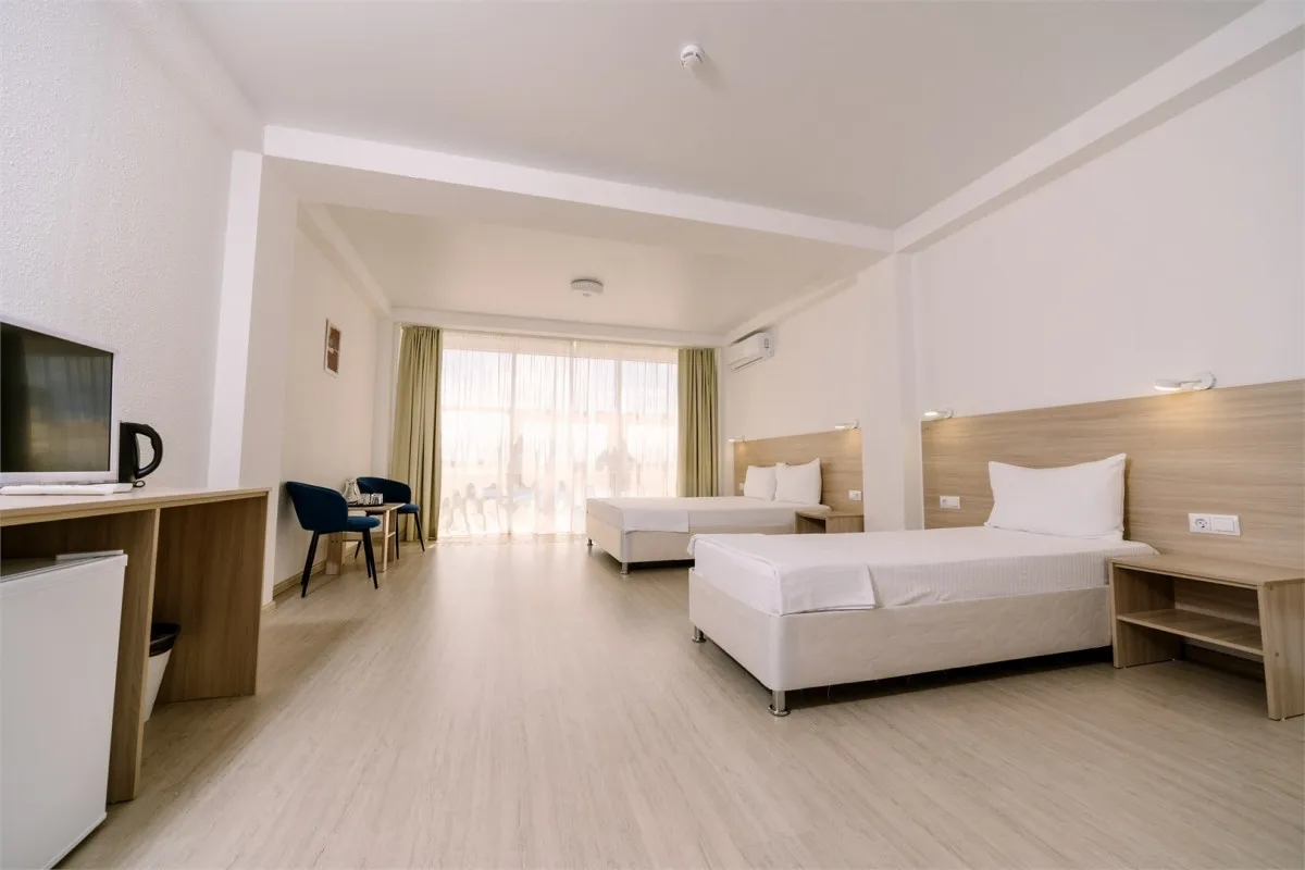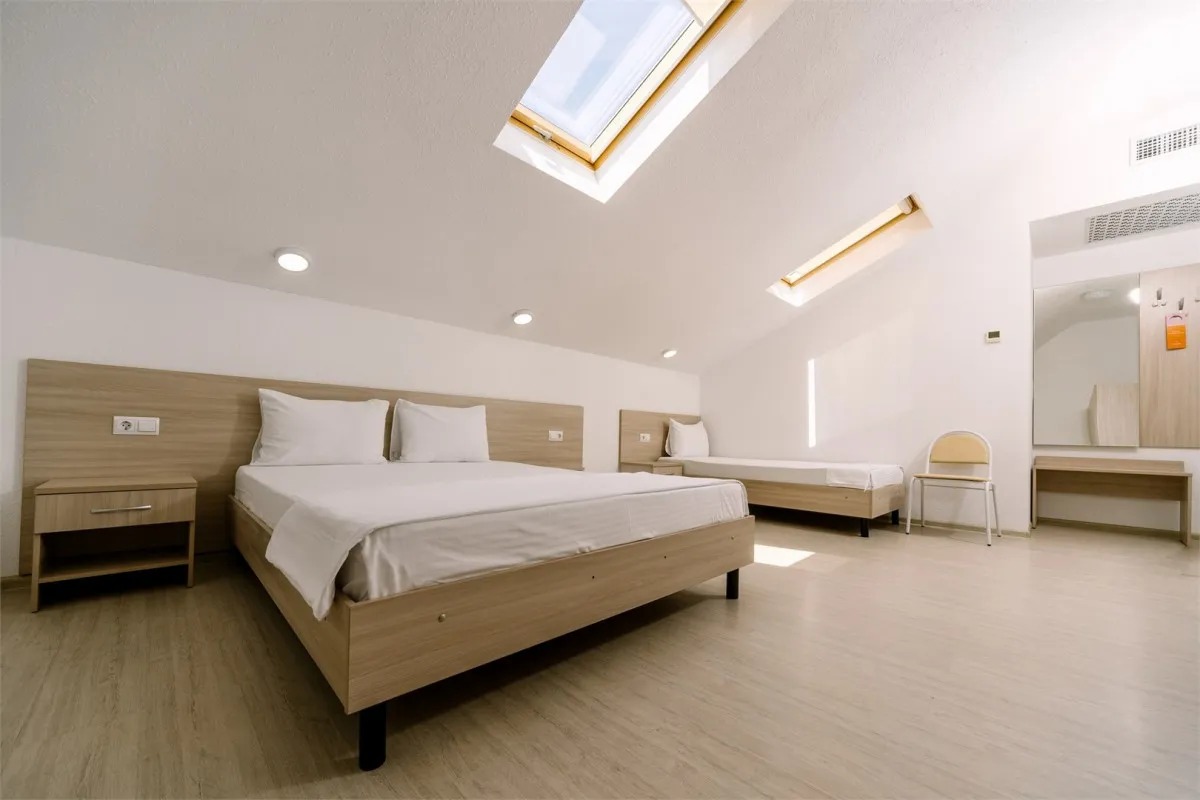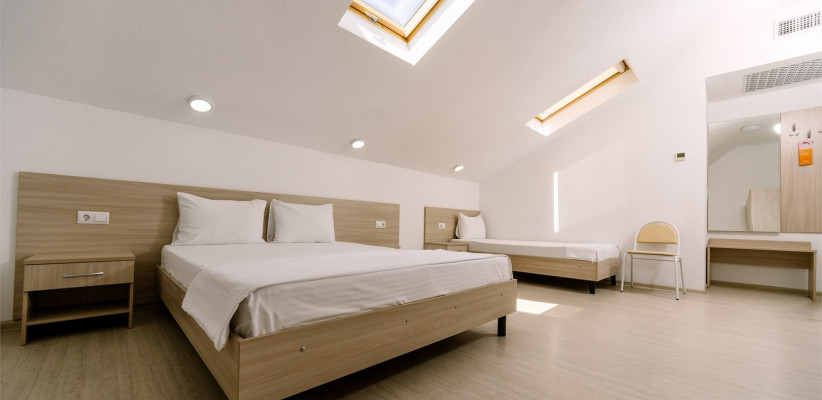 30 м2, двуспальная кровать и две односпальные. Количество гостей: 4Семейный 4-местный 2-комнатный (с балконом и межкомнатной дверью)