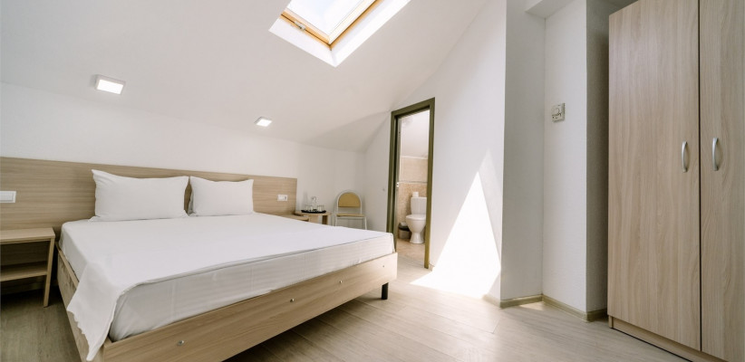16 м2, двуспальная кровать или две односпальные, мансардные окна. Количество гостей: 2Мансардный 3-местный