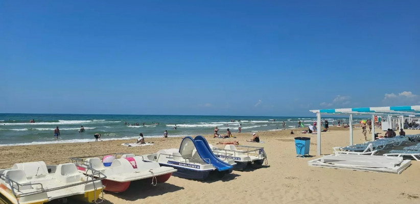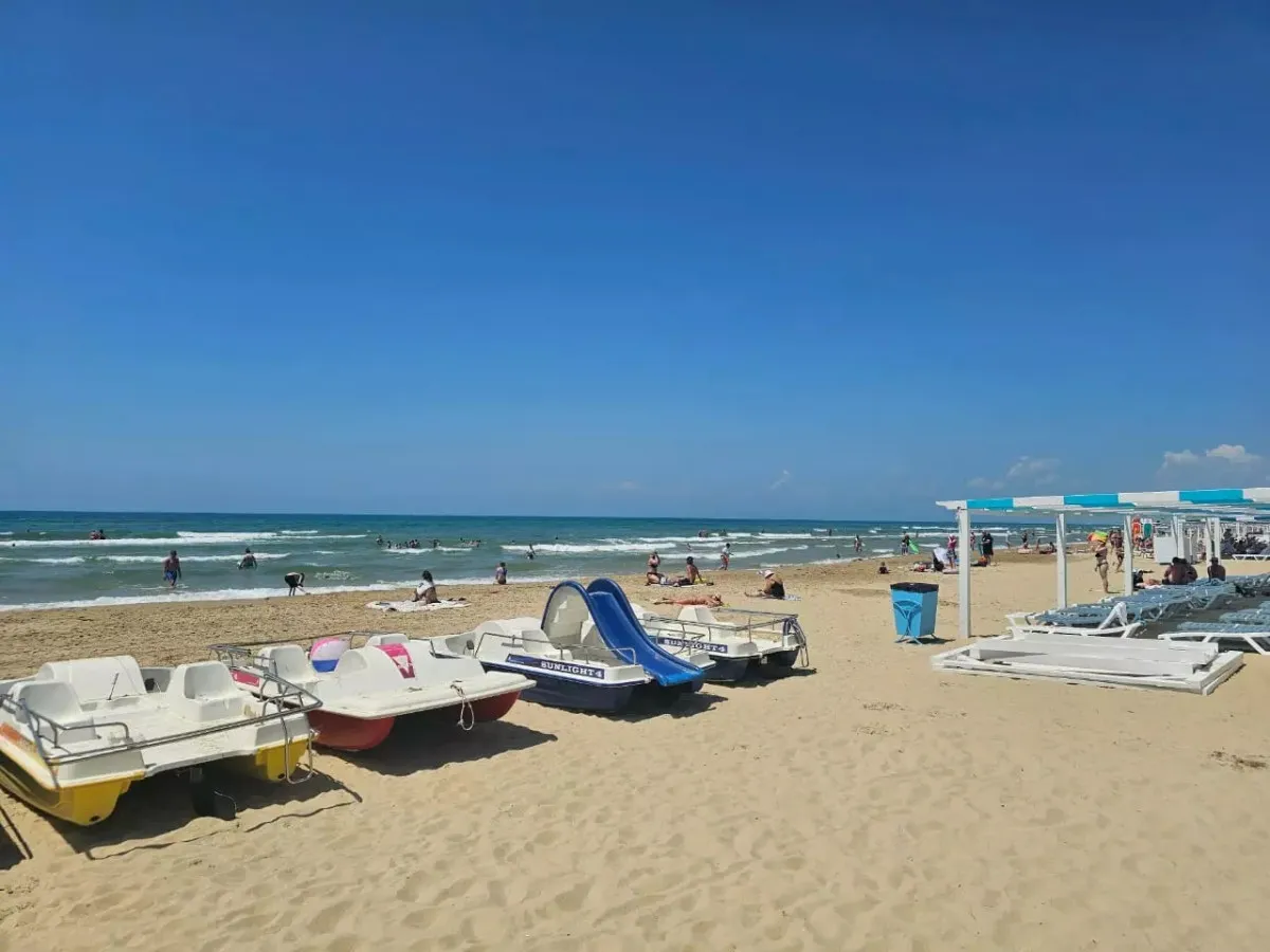 Собственный оборудованный песчаный пляж, в 650 метрах от отеля.