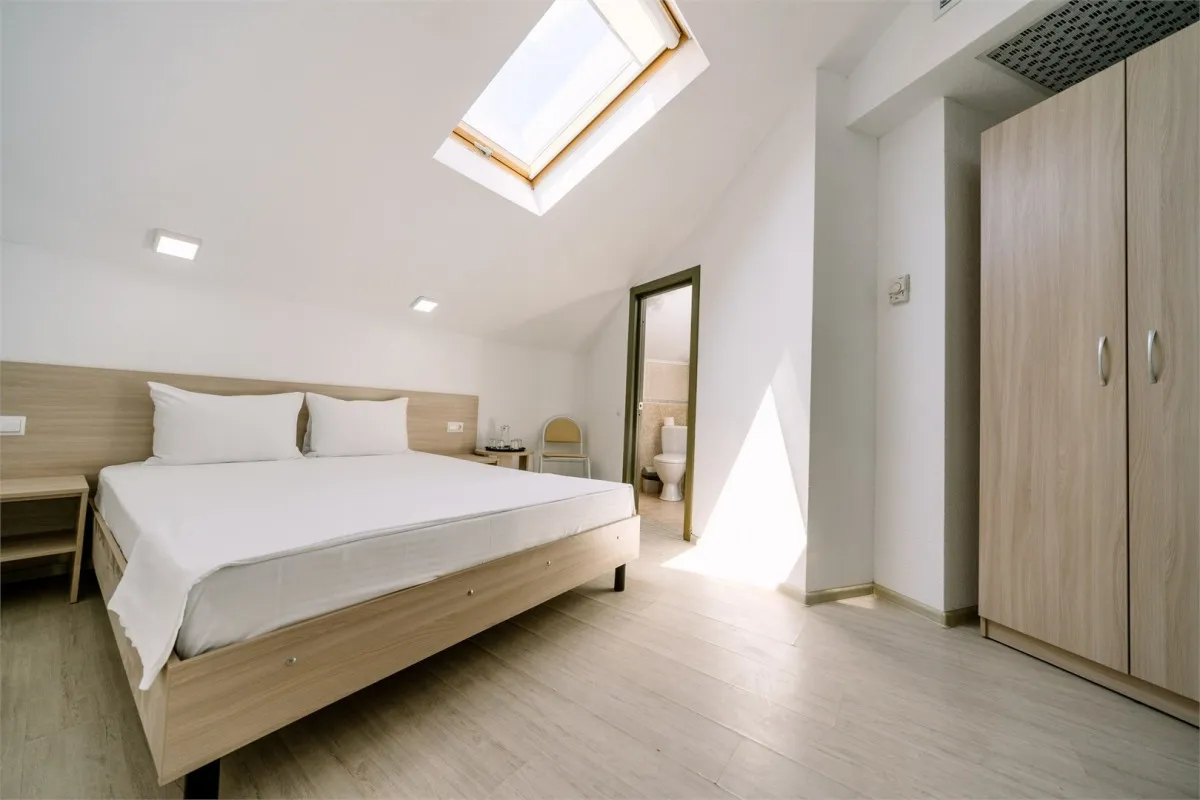 18 м2, двуспальная кровать или две односпальные, одна односпальная кровать, мансардные окна. Количество гостей: 3Стандартный 2-местный