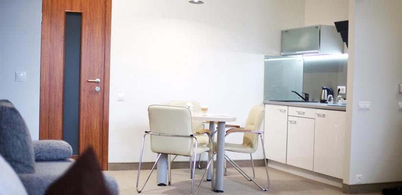 Apt – номер площадью 33 кв. м, максимальное размещение 4 взрослых, в спальне двуспальная кровать, диван. Также в номере есть кухня. Предоставляется детский инвентарь: кроватка, стульчик.