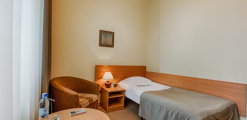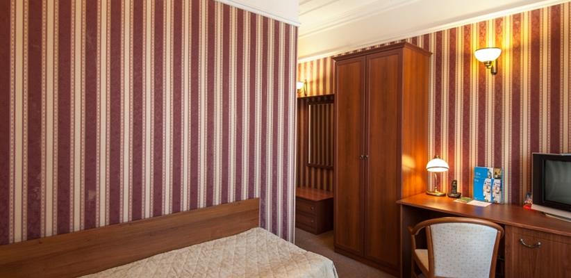 Одноместный стандарт – 15 кв.м., до 1 гостя, в номере есть односпальная кровать, кондиционер, телевизор, телефон, интернет и собственная ванная комната с душем и феном.