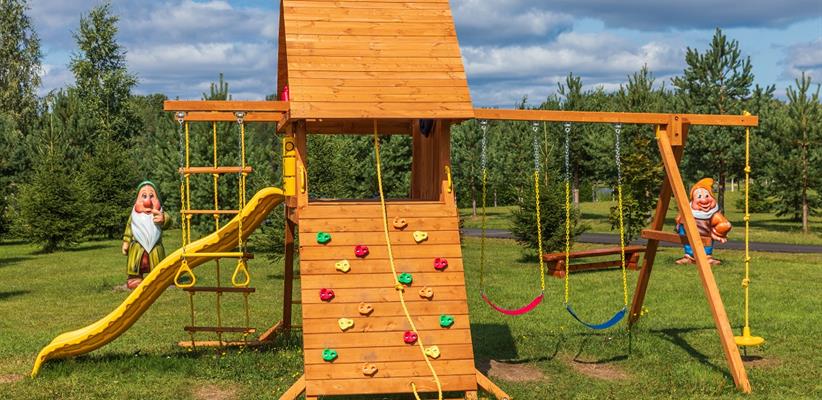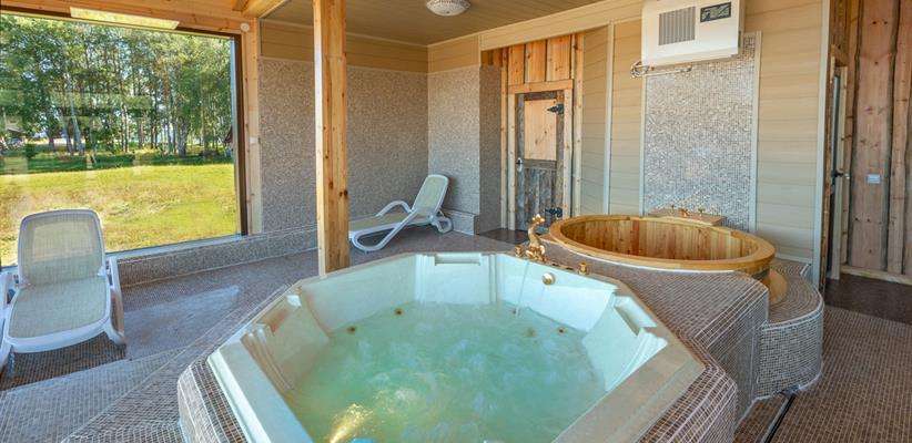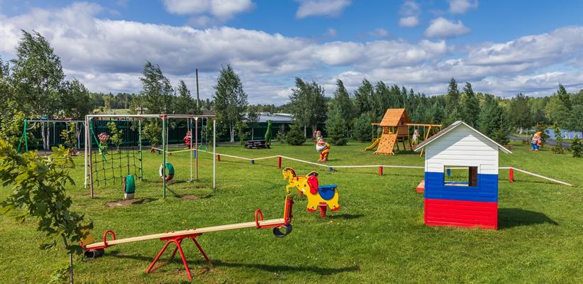 На базе отдыха размещены 4 банных комплекса, в которых можно посетить финскую сауну, русскую баню и хаммам, бассейн и джакузи, воспользоваться услугами массажа и фитнес-зала. Для детей есть детская площадка, детская комната, детское меню в ресторане.