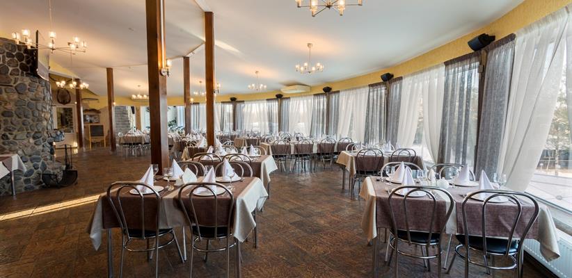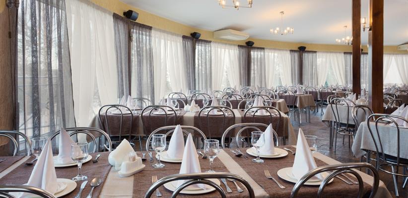 Концепция питания – ВВ. На территории базы есть ресторан «Плакучая ива», в котором по утрам сервируется завтрак, а в течение для предлагаются блюда интернациональной кухни по меню. На базе ресторана работает бар.