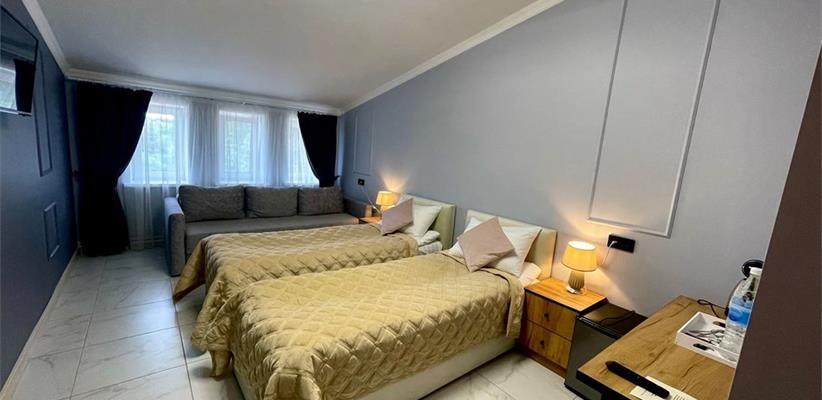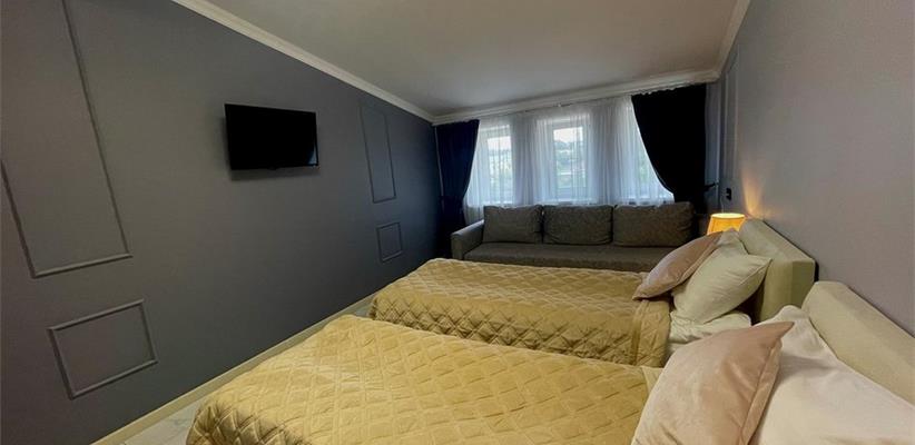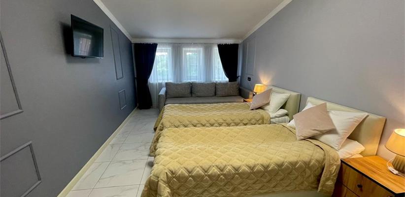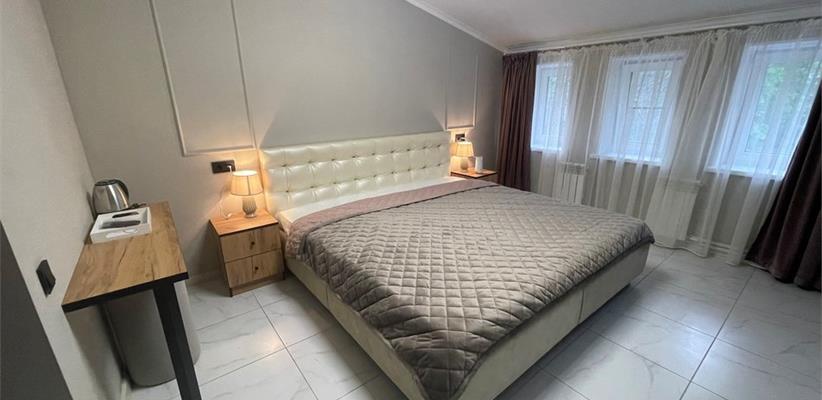 Гостевой дом «Дарья» – это уютное и современное место для комфортного отдыха в городе Владимир. Построенная в феврале 2023 года, она сочетает в себе атмосферу домашнего уюта и удобства современной инфраструктуры. На территории гостиницы оборудована парковка, находящаяся под круглосуточным видеонаблюдением. Остановка общественного транспорта расположена всего в минуте ходьбы. В шаговой доступности находятся исторические памятники, скверы, парки, кафе, рестораны, магазины, рынки, а также банки и деловые центры. Номера оформлены с использованием качественных отделочных материалов и оснащены всей необходимой техникой. В каждом номере предусмотрена отдельная ванная комната с душевой кабиной. Для гостей работает ресторан европейской кухни с разнообразным меню. Без питания – 2-разовое (завтрак+ужин) – Завтрак континентальный Ужин – Рестораны и бары: ресторан Салон красоты Интернет: wi-fi в номерах На стойке регистрации Как добраться: Самолетом до аэропорта г. Владимир, далее на такси до отеля. Поездом до ж/д вокзала г. Владимир, далее на троллейбусе №10 до остановки «Улица Мира», далее 520 м до отеля. Рекомендуем заказывать трансфер.
