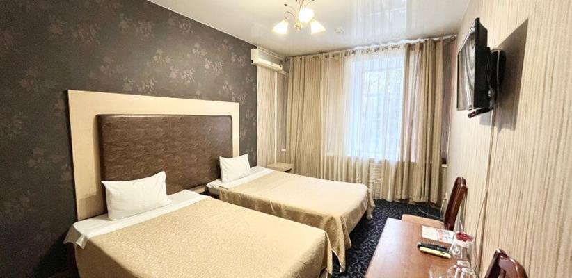 Двухместный номер с раздельными кроватями площадью 22 кв. м. В номере две односпальные кровати 90 см х 200 см. Максимальное количество проживающих – 2 человека.