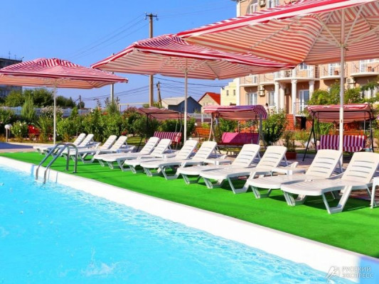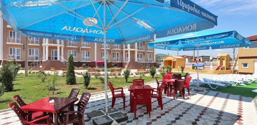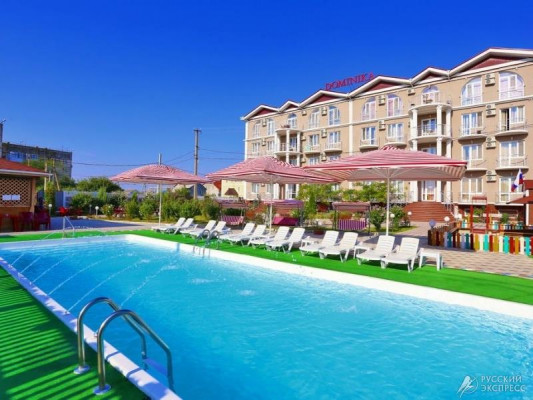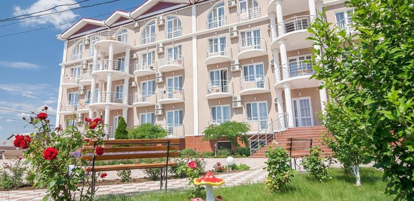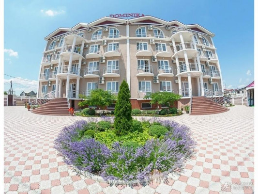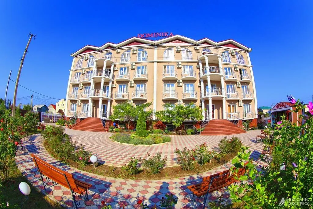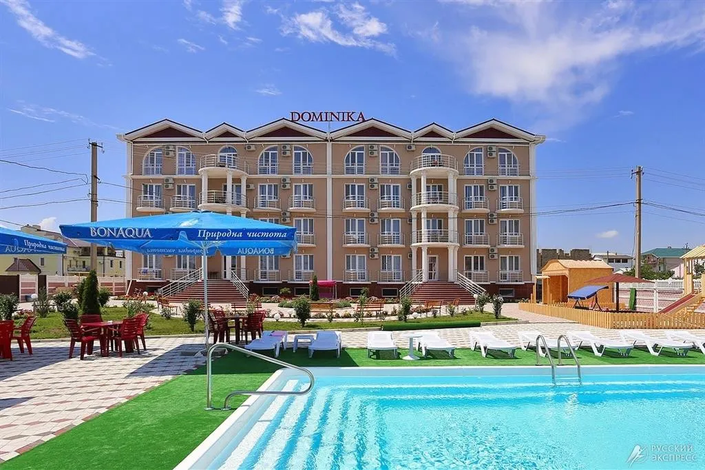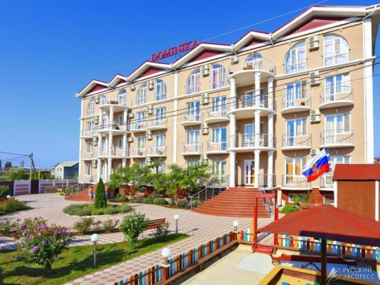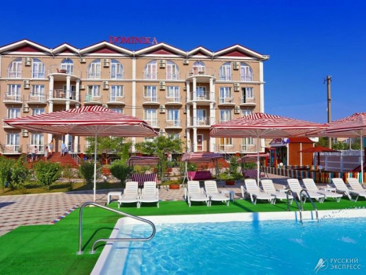 Гостевой дом «Доминика» — современное четырехэтажное здание с легкими открытыми балконами и комфортабельными номерами. На первом этаже расположена круглосуточная стойка приема и размещения. Территория озеленена, закрыта для посторонних, охраняется круглосуточно. На территории оборудована зона отдыха с открытым подогреваемым бассейном, теневым навесом с шезлонгами, детским бассейном и игровой площадкой. Так же на территории есть небольшое кафе и площадки для анимации. Гостевой дом имеет собственную бесплатную парковку.