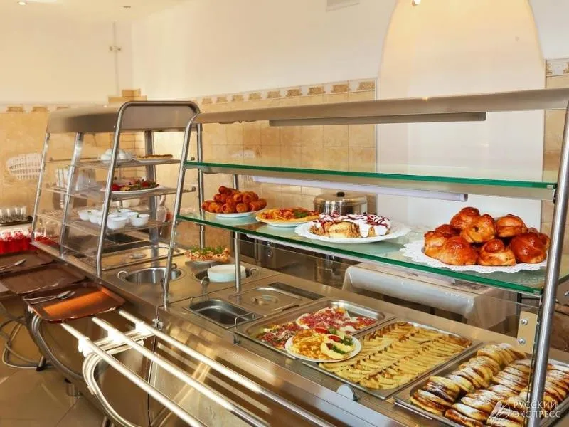 Обед можно заказать самостоятельно по прибытию за дополнительную стоимость. В меню включены холодные закуски, салаты, первые и вторые блюда, гарниры, горячие напитки, прохладительные напитки собственного производства, свежая выпечка, кулинария, сезонные фрукты и овощи.
