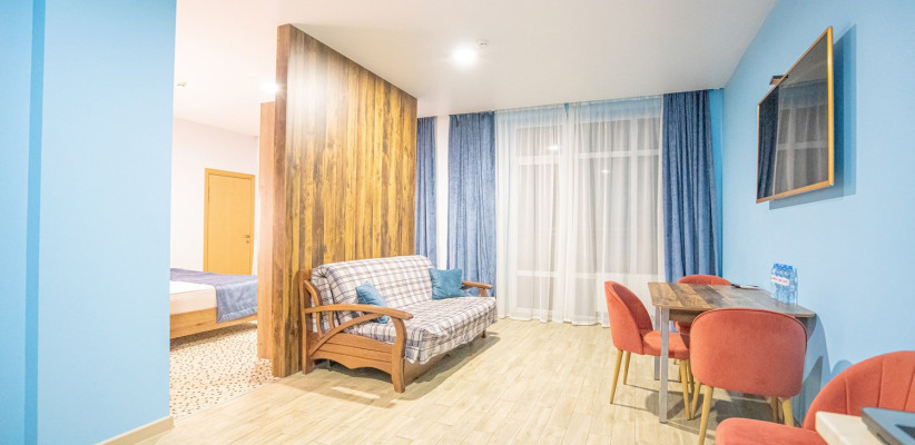 45 м2, без вида/ вид на море, два смежных номера категории Стандарт. Возможна установка дополнительно раскладной кровати. Количество гостей: 4Полулюкс