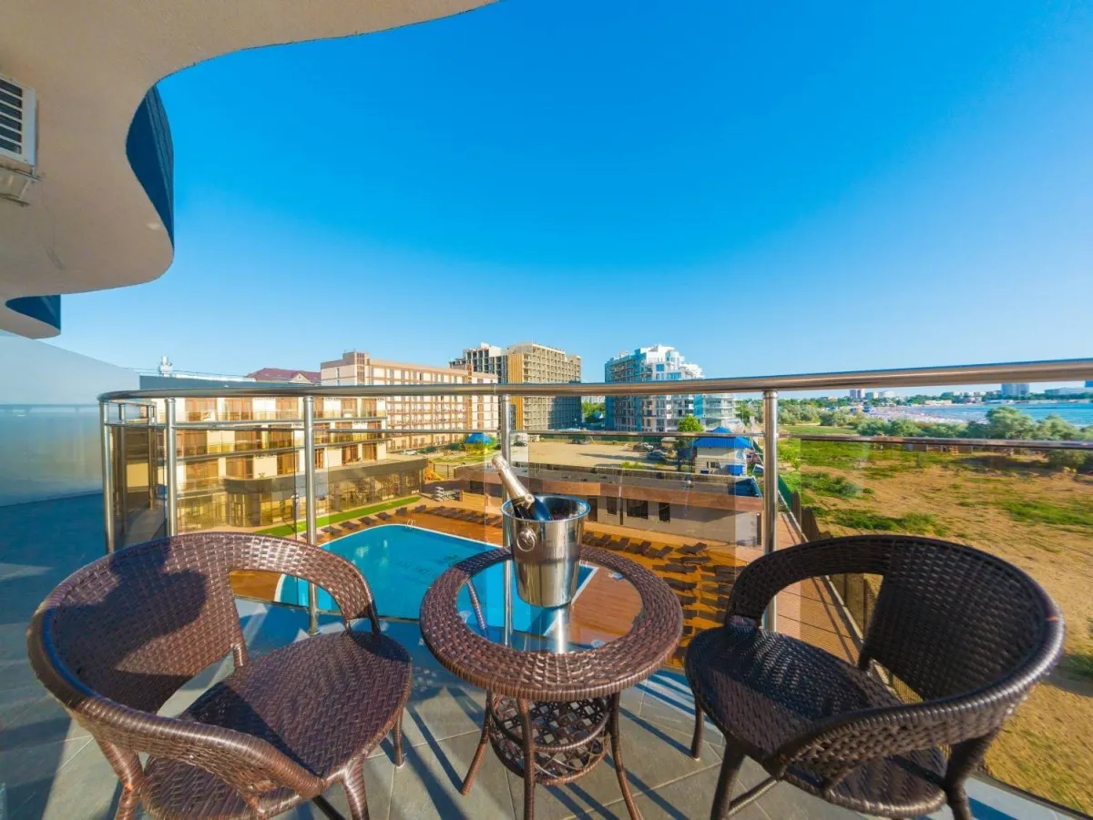 50 м2, балкон, вид на море, двуспальная кровать, гостиная, кофемашина, гладильная станция. Количество гостей: 4
