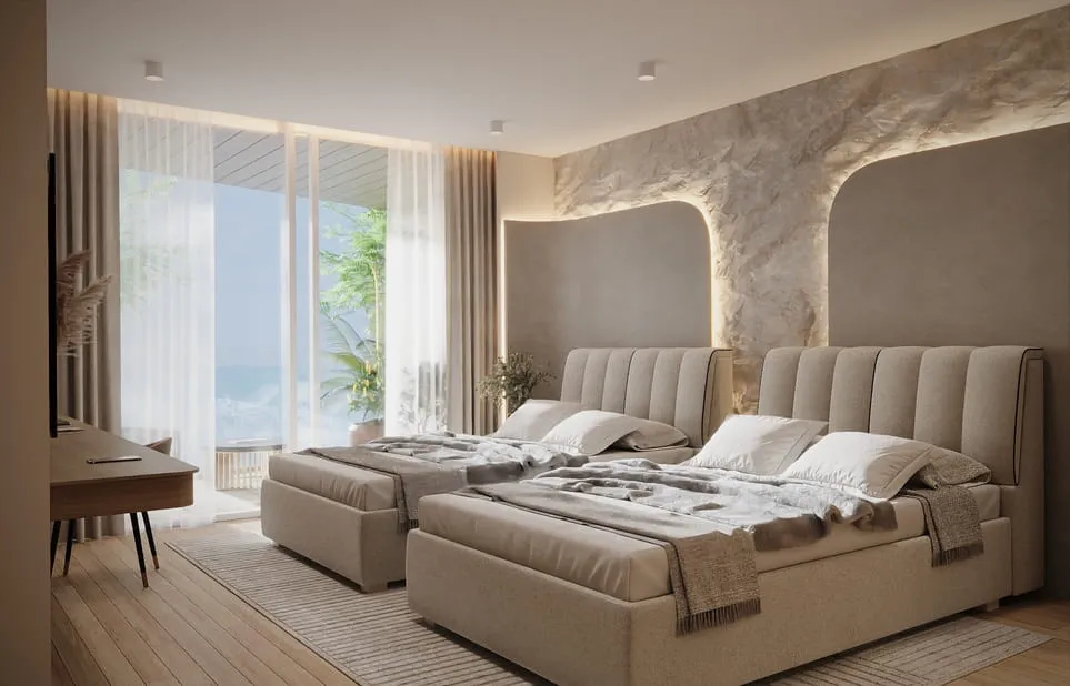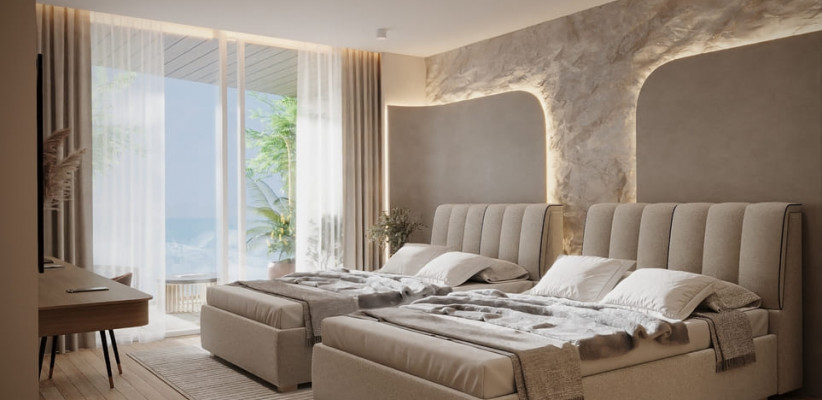 - Просторные номера от 45 до 180 кв м с прямым видом на море.