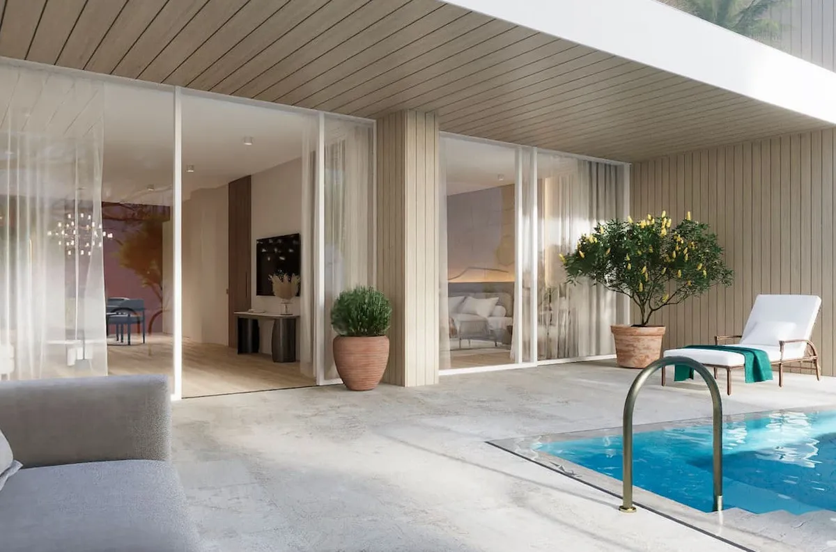 Интерьеры и сервис отражают современное понимание роскоши – без излишней помпезности, но с безупречным вниманием к деталям. Номера площадью от 45 до 180 кв. м оснащены косметикой Balmain, а люксы с индивидуальными бассейнами подчеркивают идею личного пространства и спокойствия. Сервис строится на интуитивной заботе, где внимание и такт создают атмосферу естественного комфорта.