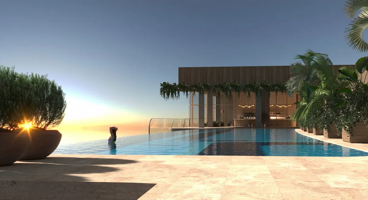 - 2 открытых подогреваемых инфинити-бассейна расположены на 7 этаже