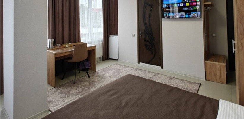 25 м2, односпальная и двуспальная кровать, рабочая зона. Количество гостей: 3.Люкс