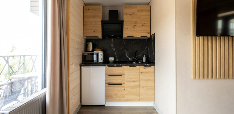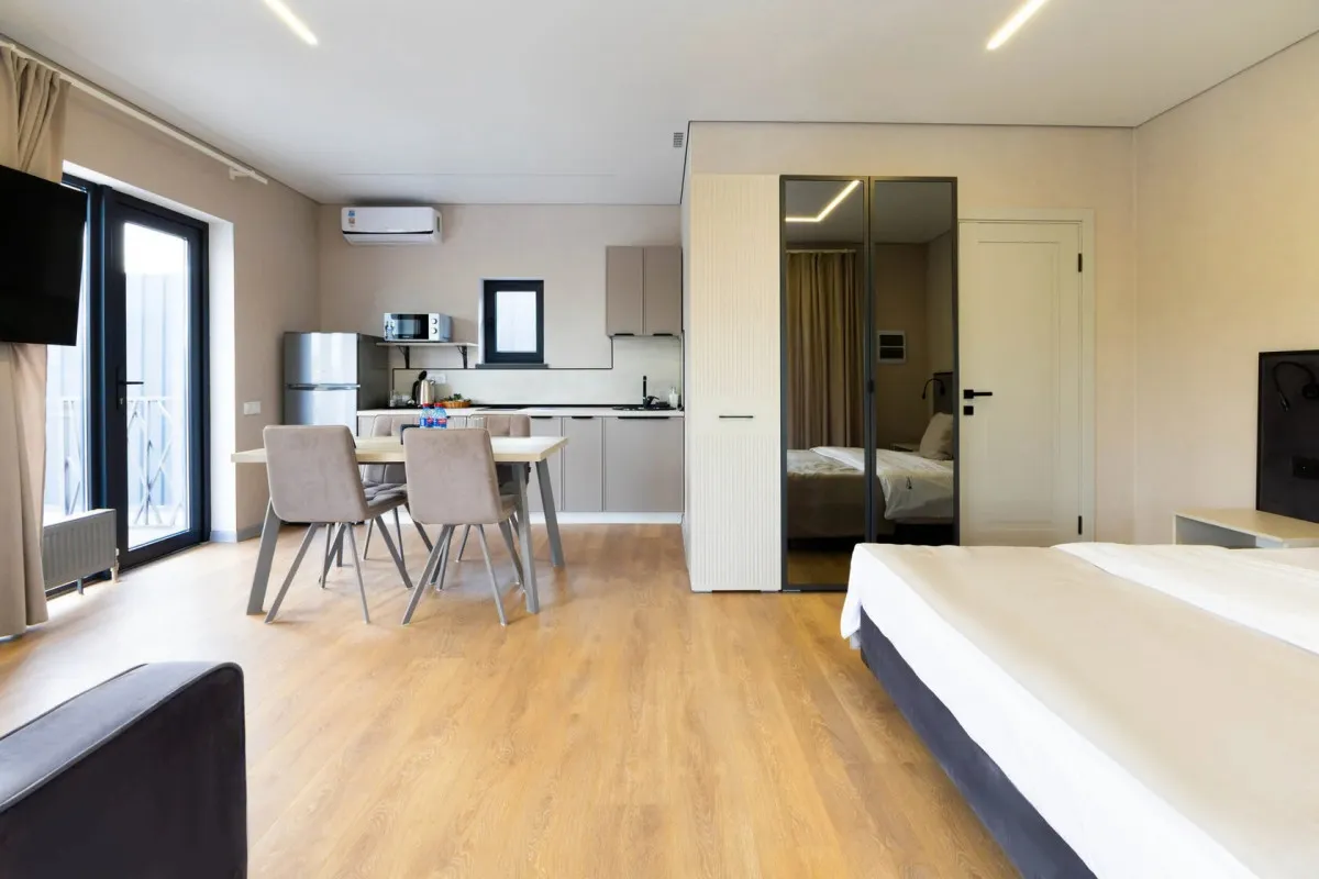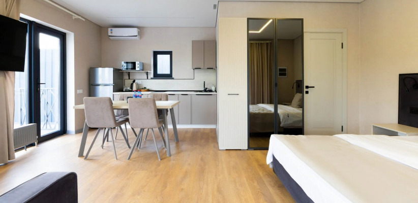 25 м2, с видом на бассейн, двуспальная кровать, оборудованная кухонная зона. Количество гостей: 2Апартаменты комфорт