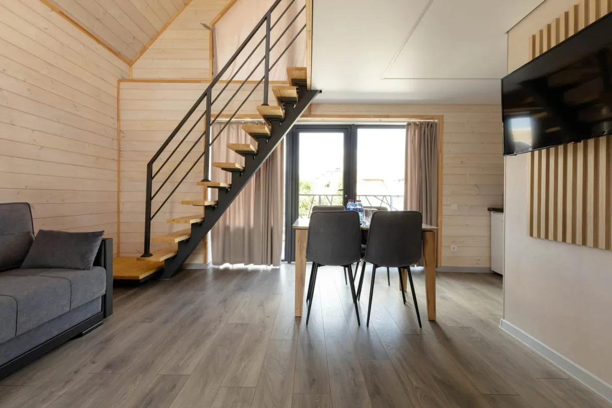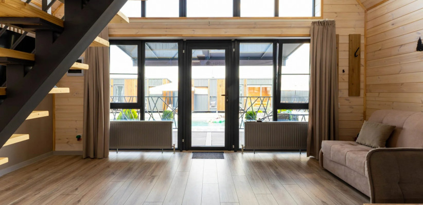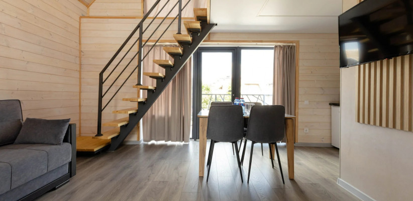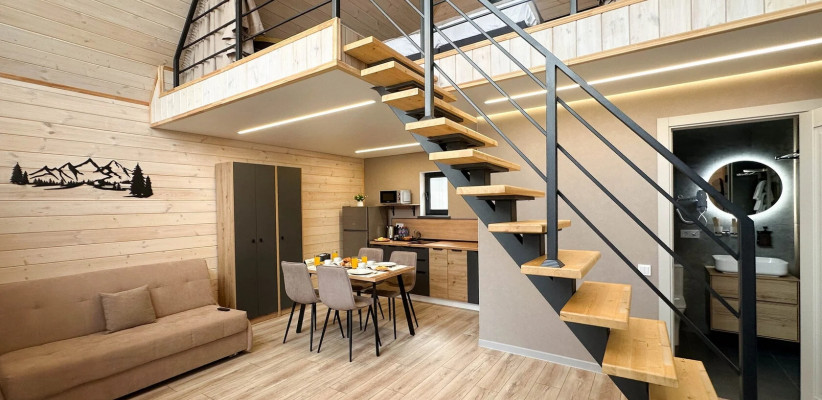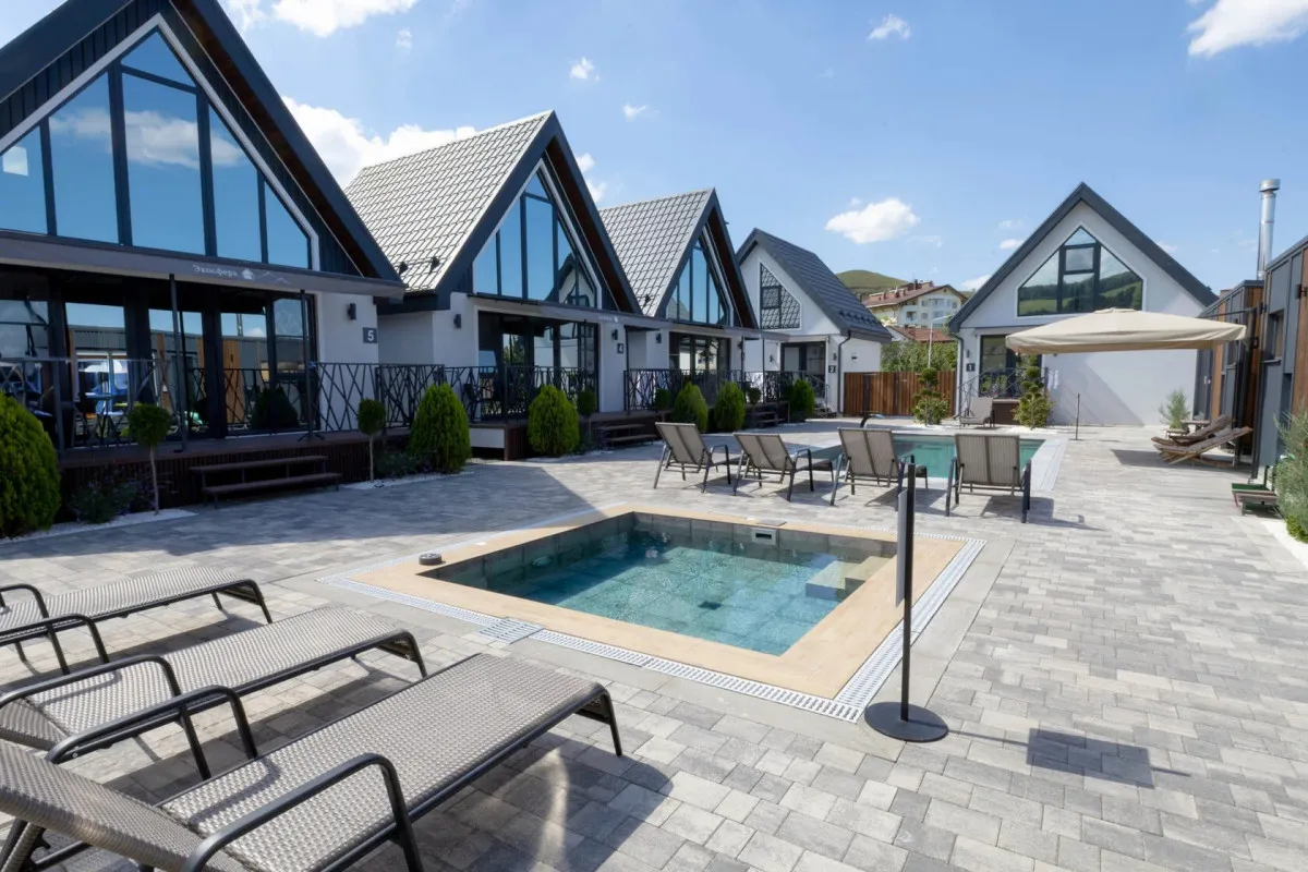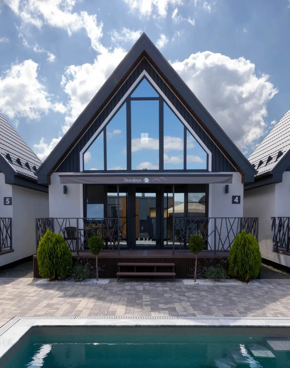 Концепция «Экосферы» строится на сочетании природной среды и комфортного размещения. Гости проживают в современных барнхаусах – отдельных домиках с продуманной планировкой, которые гармонично вписаны в окружающий ландшафт. Особое внимание уделено зонам релакса и отдыху на свежем воздухе – все это позволяет расслабиться после прогулок по горам и окрестностям.