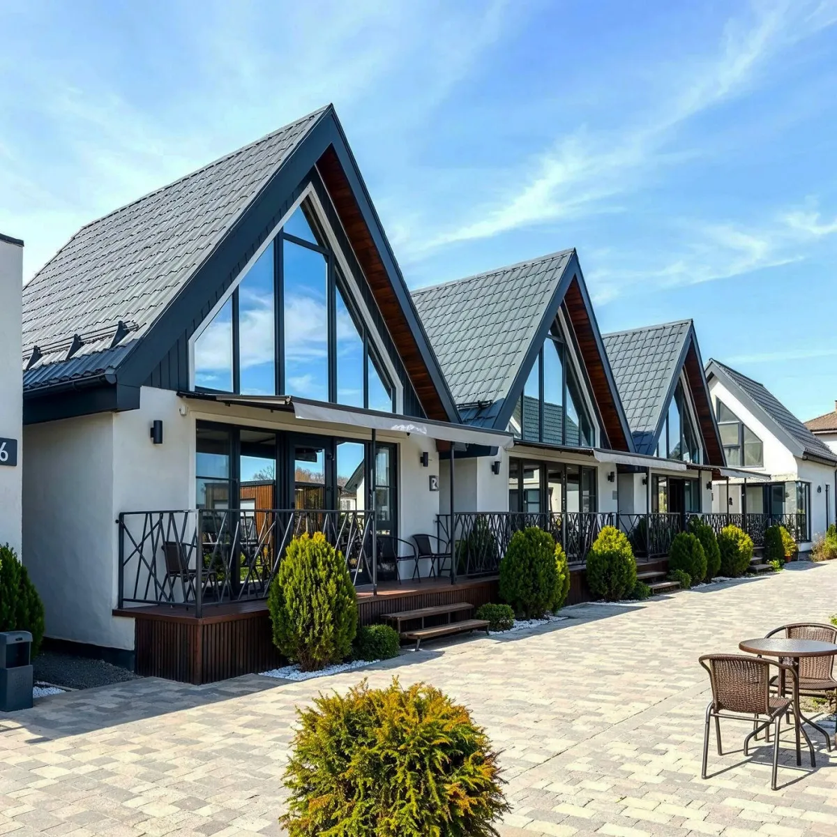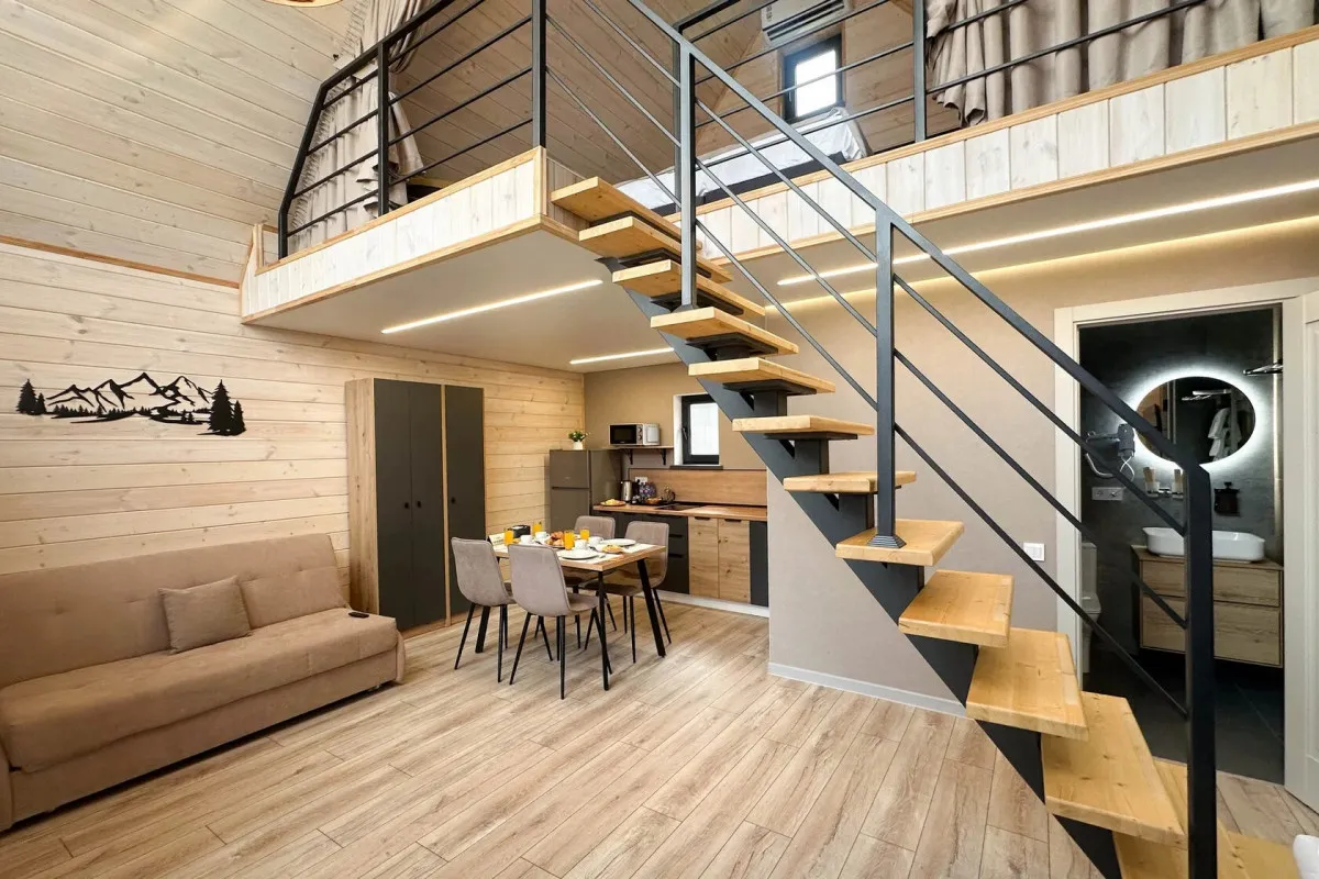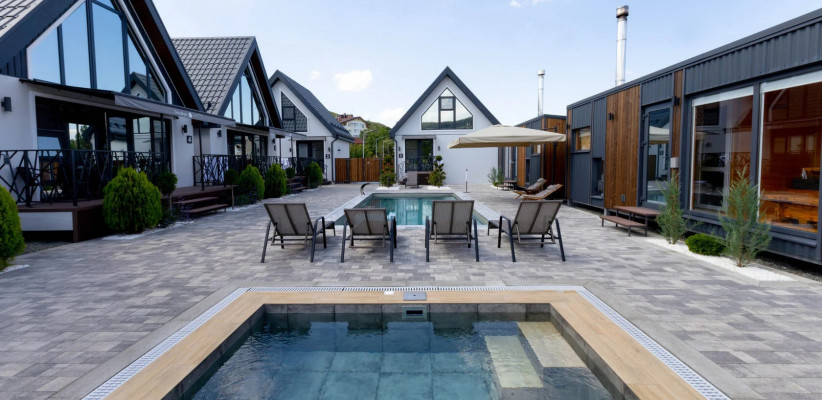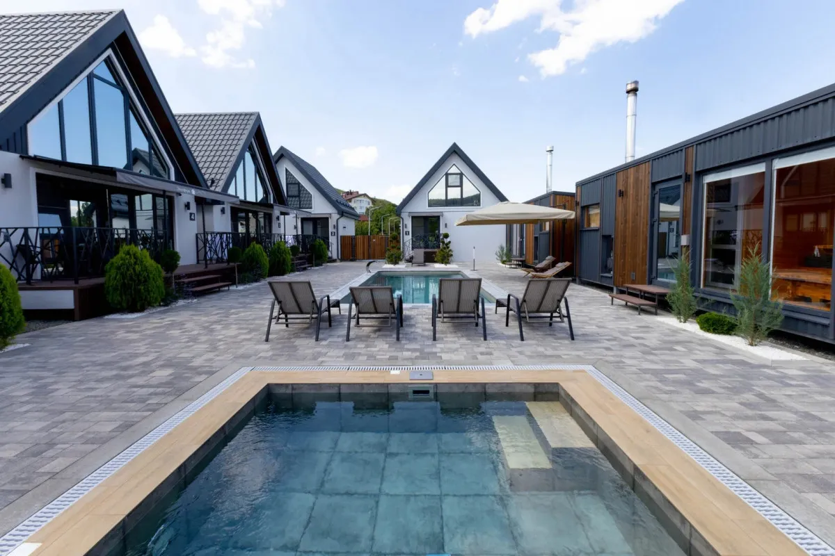 Концепция «Экосферы» строится на сочетании природной среды и комфортного размещения. Гости проживают в современных барнхаусах – отдельных домиках с продуманной планировкой, которые гармонично вписаны в окружающий ландшафт. Особое внимание уделено зонам релакса и отдыху на свежем воздухе – все это позволяет расслабиться после прогулок по горам и окрестностям.