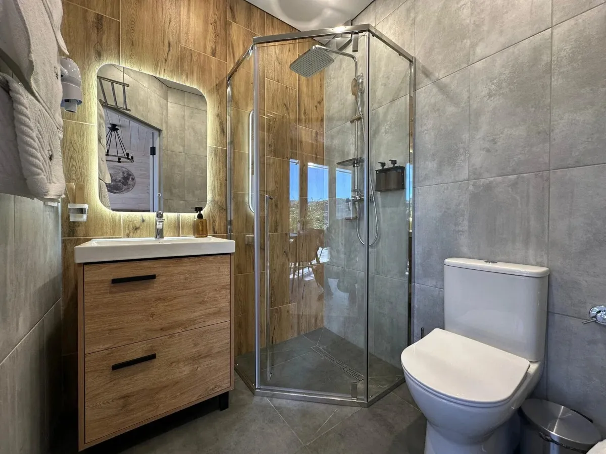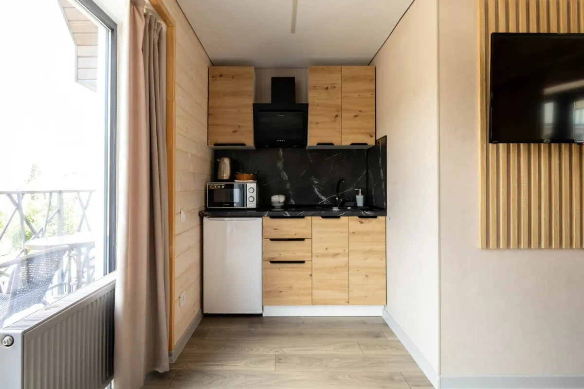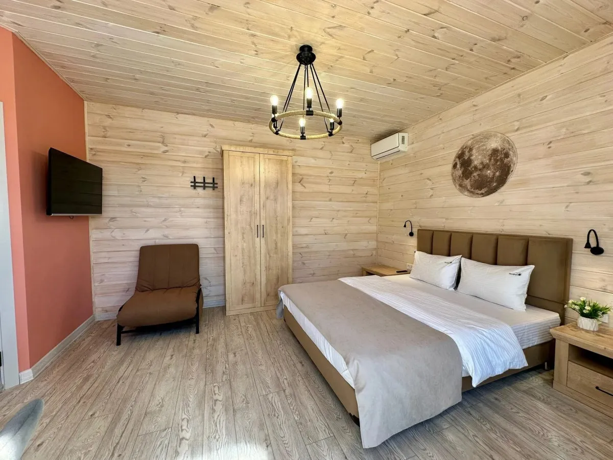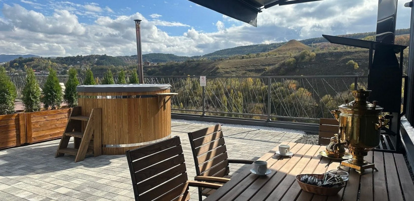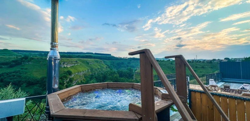 35 м2, вид на Аликоновское ущелье, отдельная зона барбекю, чан на дровах, двуспальная кровать, кресло-кровать, оборудованная кухонная зона. Количество гостей: 3