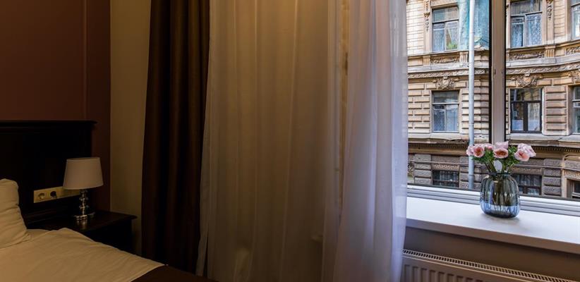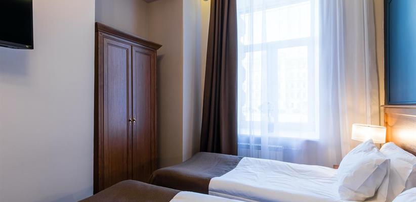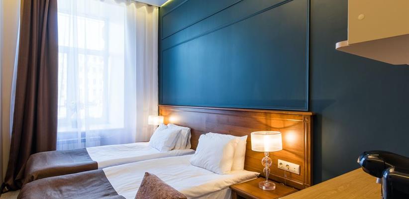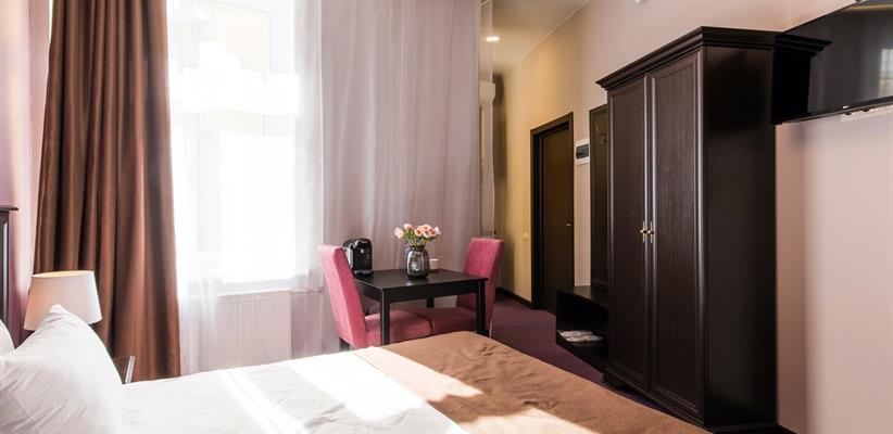 Улучшенный номер – площадь 18 кв. м, две односпальные или большая двуспальная кровать, вместимость до 3 человек.