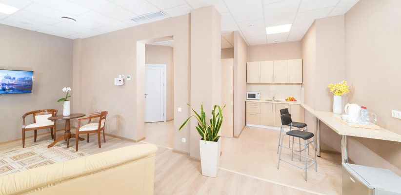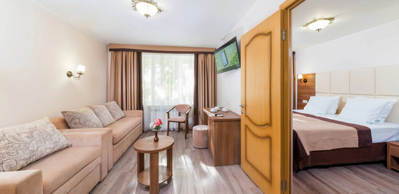 35 м2, спальня, гостиная, двуспальная кровать, диван-кровать. Количество гостей: 3«Джуниор-сюит» двухместный однокомнатный (Корпус №4)