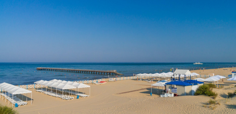 Собственный оборудованный песчаный пляж, первая линия.