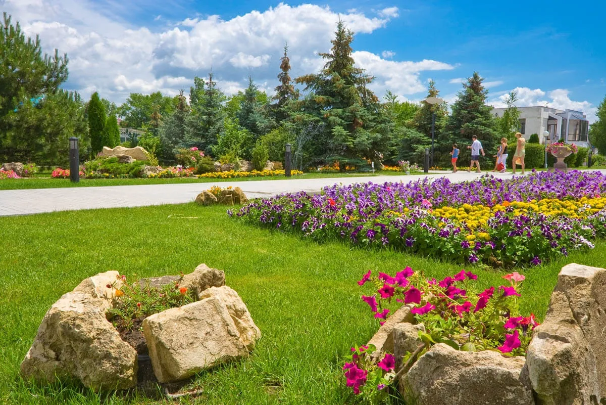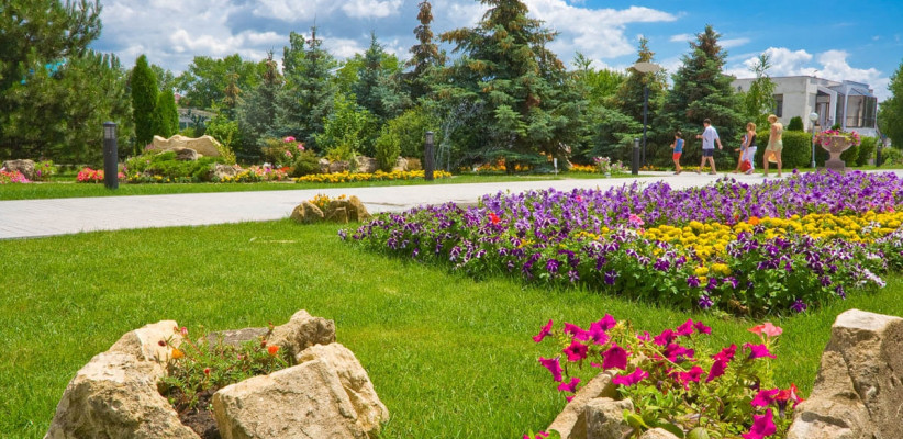 Территория здравницы площадью около 7,7 га разделена на две зоны – «Эллада» и «Олива-парк». Комплекс включает 12 спальных корпусов с номерным фондом различных категорий. В 2022 году был открыт новый корпус «Персей» – современное 6-этажное здание с номерами, выполненными в стиле спокойного минимализма. Просторная и озелененная территория с цветниками, аллеями и прогулочными зонами создает атмосферу уединения и способствует полноценному отдыху и восстановлению.