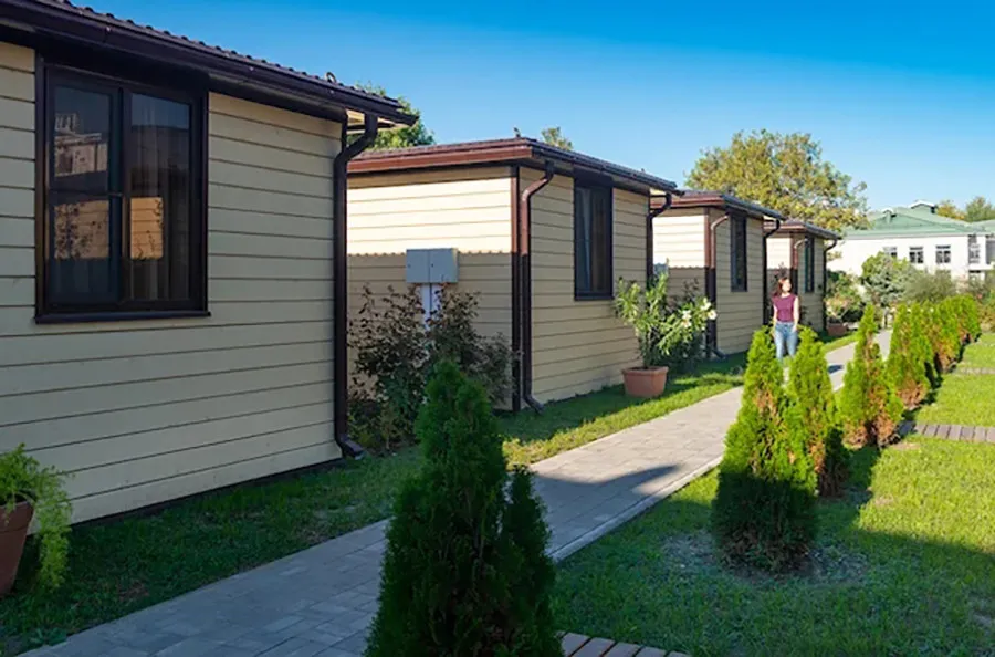 20 м2, две односпальные кровати, соединенные вместе. Домики не имеют централизованного отопления, оборудованы конвекторными инфракрасными обогревателями (один – в санузле, один – в жилой комнате). Количество гостей: 3