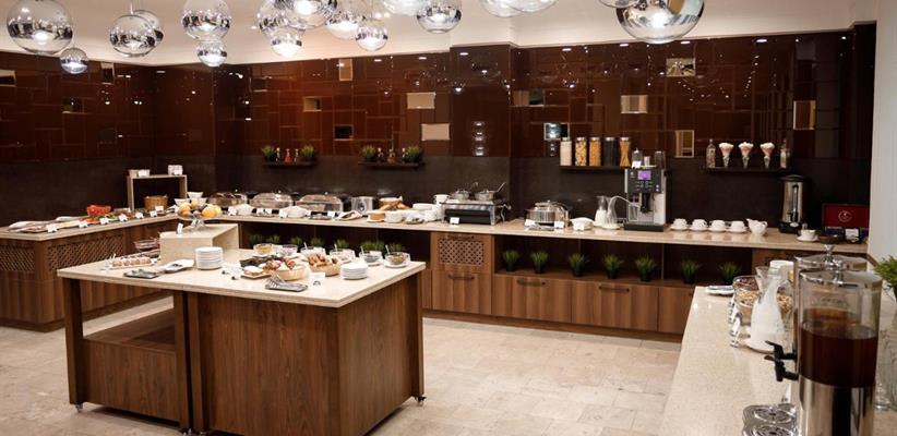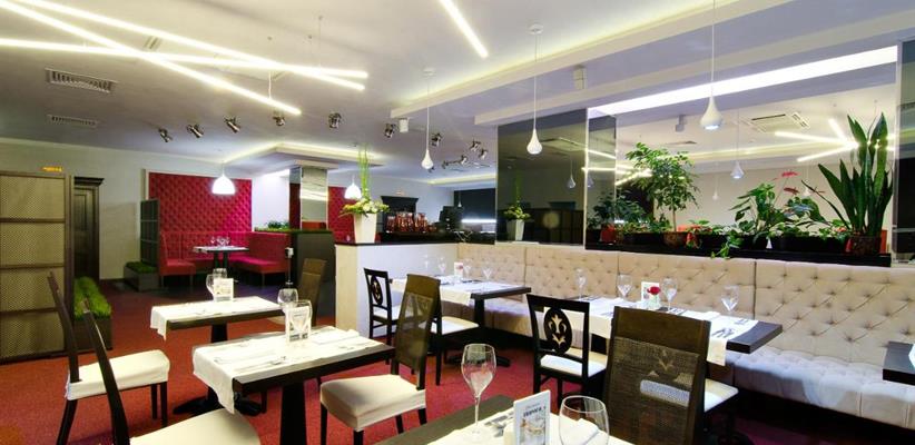 На территории отеля работают: ресторан «Восточный экспресс» – кухня разных стран, ресторан «Дворянское гнездо», лобби-бар, кондитерская «Лунго», летний ресторан «Мята» – панорамный ресторан на крыше отеля.