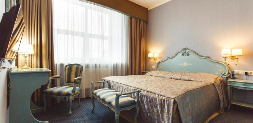 Комфорт – 36 кв. м., до 3 гостей, в номере двуспальная кровать, в стоимость проживания в номере данной категории входит час в СПА-центре отеля.