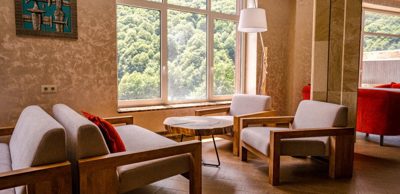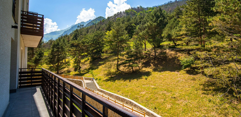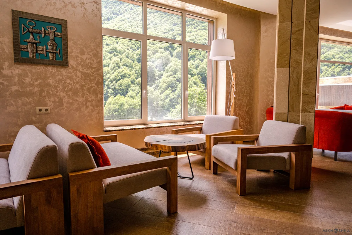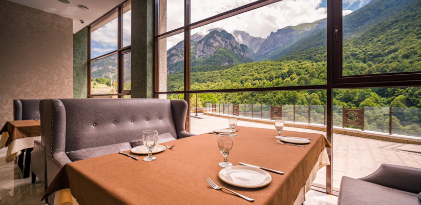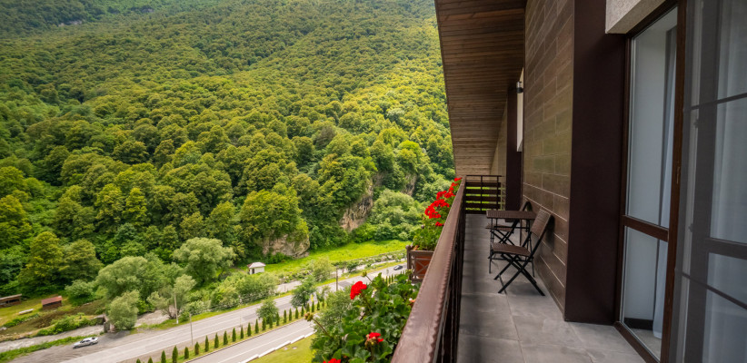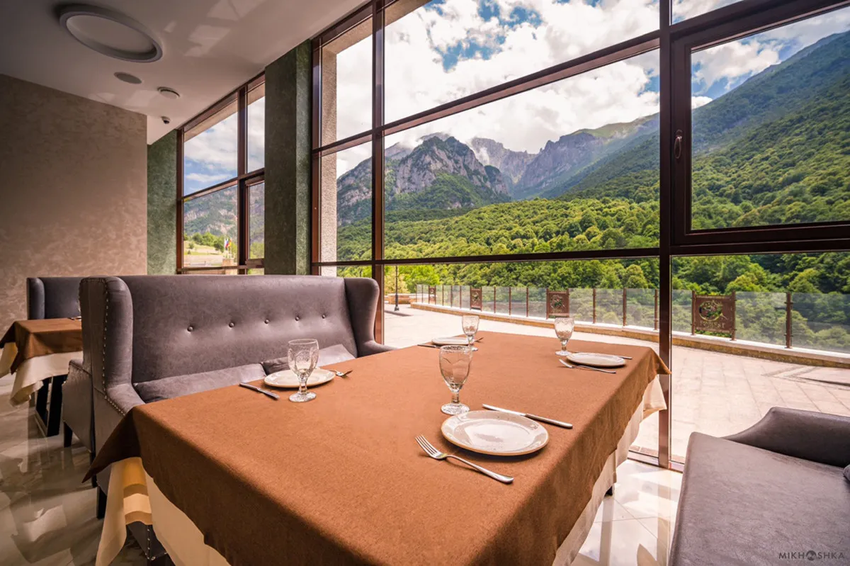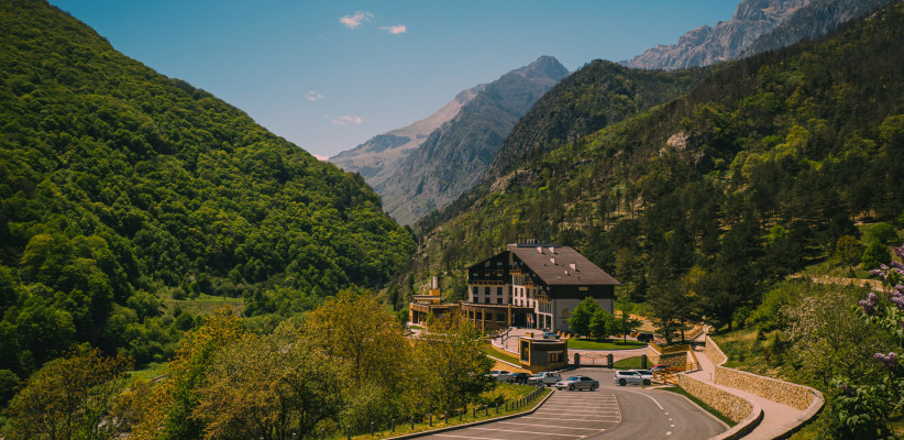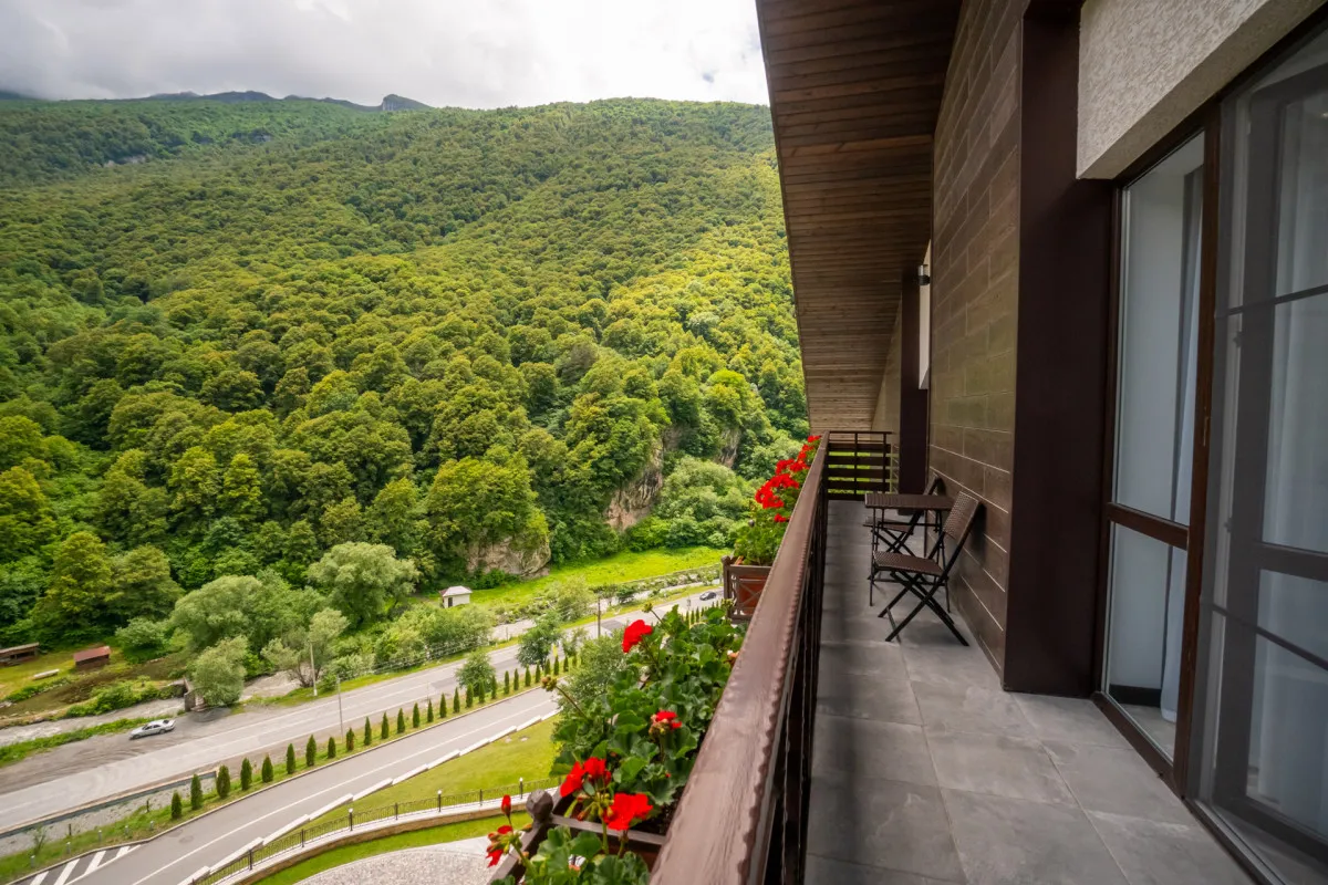 При этом локация остаётся удобной с точки зрения транспортной доступности: отель находится в 50 км от аэропорта «Владикавказ» — это около 45–50 минут в пути на автомобиле, а расстояние до центра Владикавказ составляет 40 км, что занимает примерно 40 минут езды по живописной горной дороге.