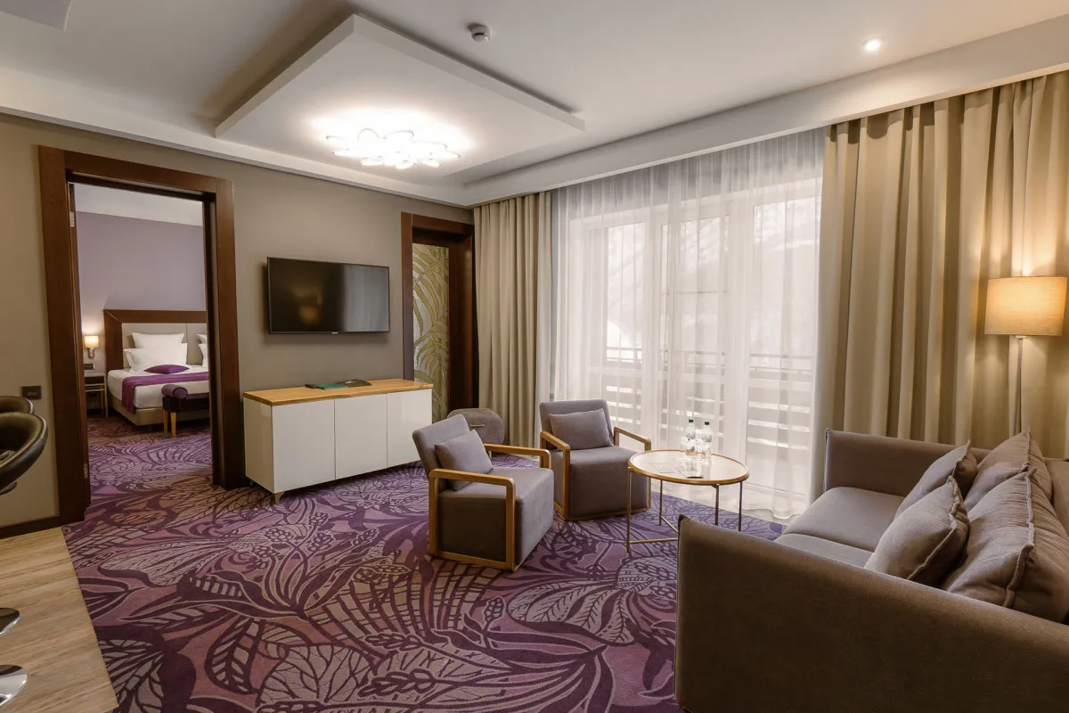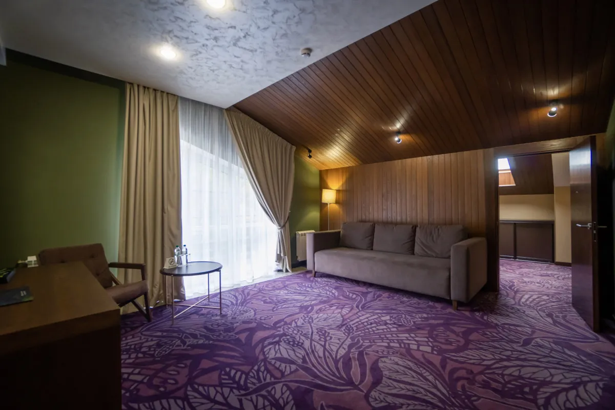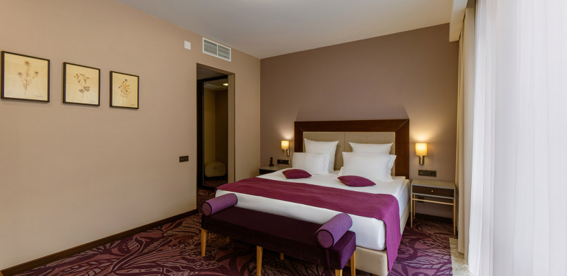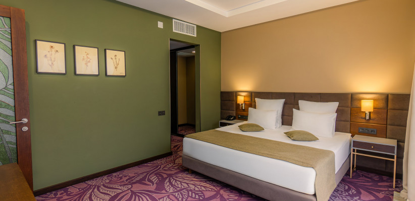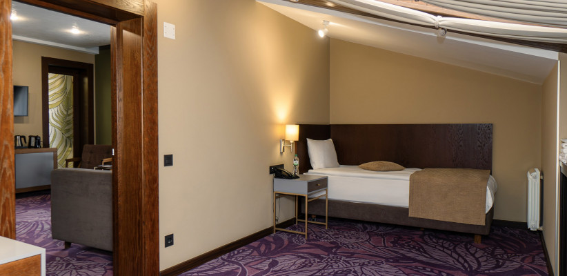 35 м2, номер состоит из двух комнат, двуспальная кровать и две раздельные кроватиЛюкс