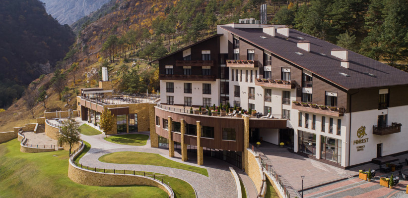 Forrest Terrace Hotel расположен в живописном Куртатинское ущелье — одном из самых красивых уголков Северной Осетии-Алании. Выбор локации для проекта: ущелье известно богатой природой с реликтовыми растениями, мягким горным климатом и высокой концентрацией исторических, природных и архитектурных памятников. Отель находится в окружении горных склонов и чистого воздуха, что создаёт атмосферу уединения и полноценного восстановления.
