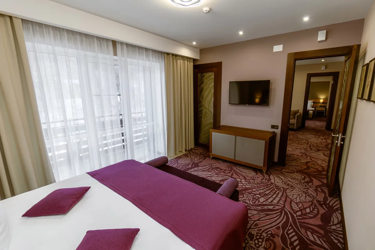 81 м2, трехкомнатный номер, номер состоит из двух просторных спален с большими двуспальными кроватями, уютной гостиной с письменным столом, балкона