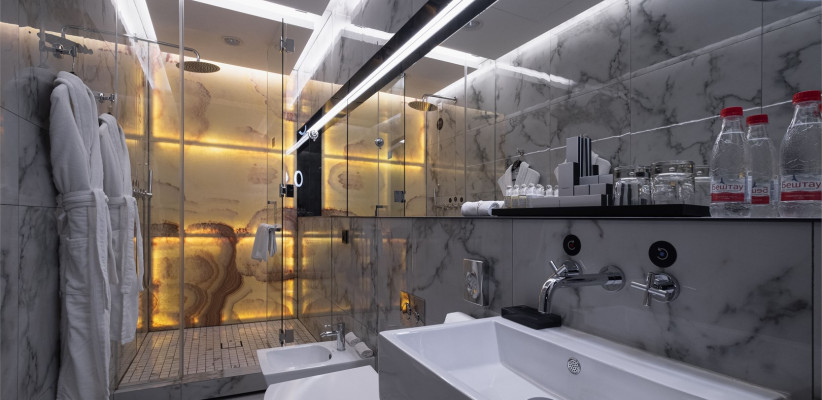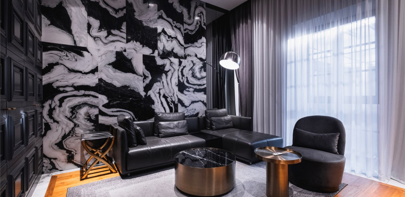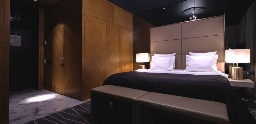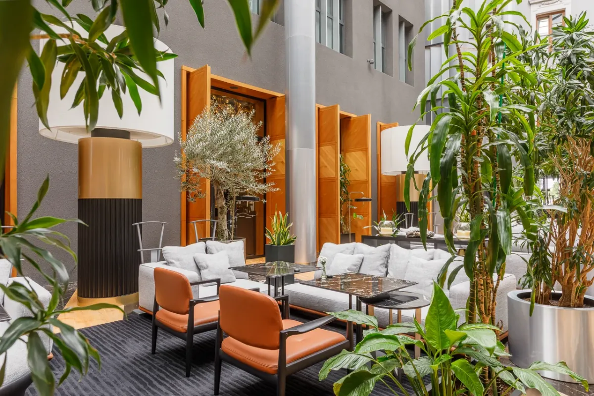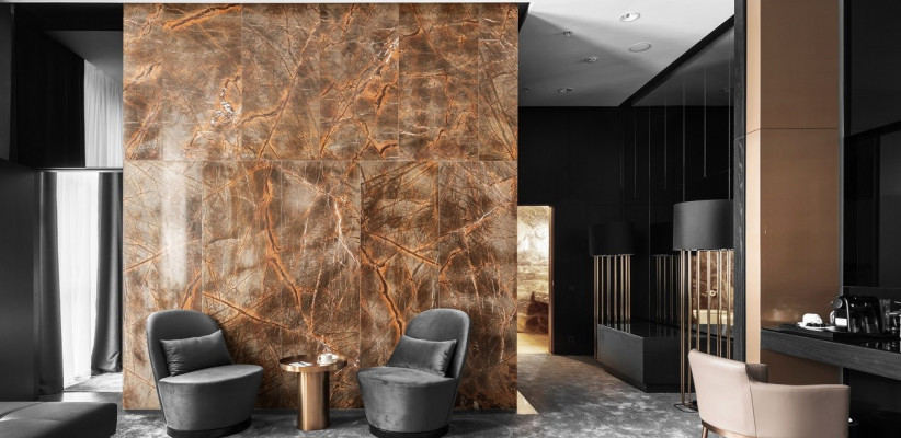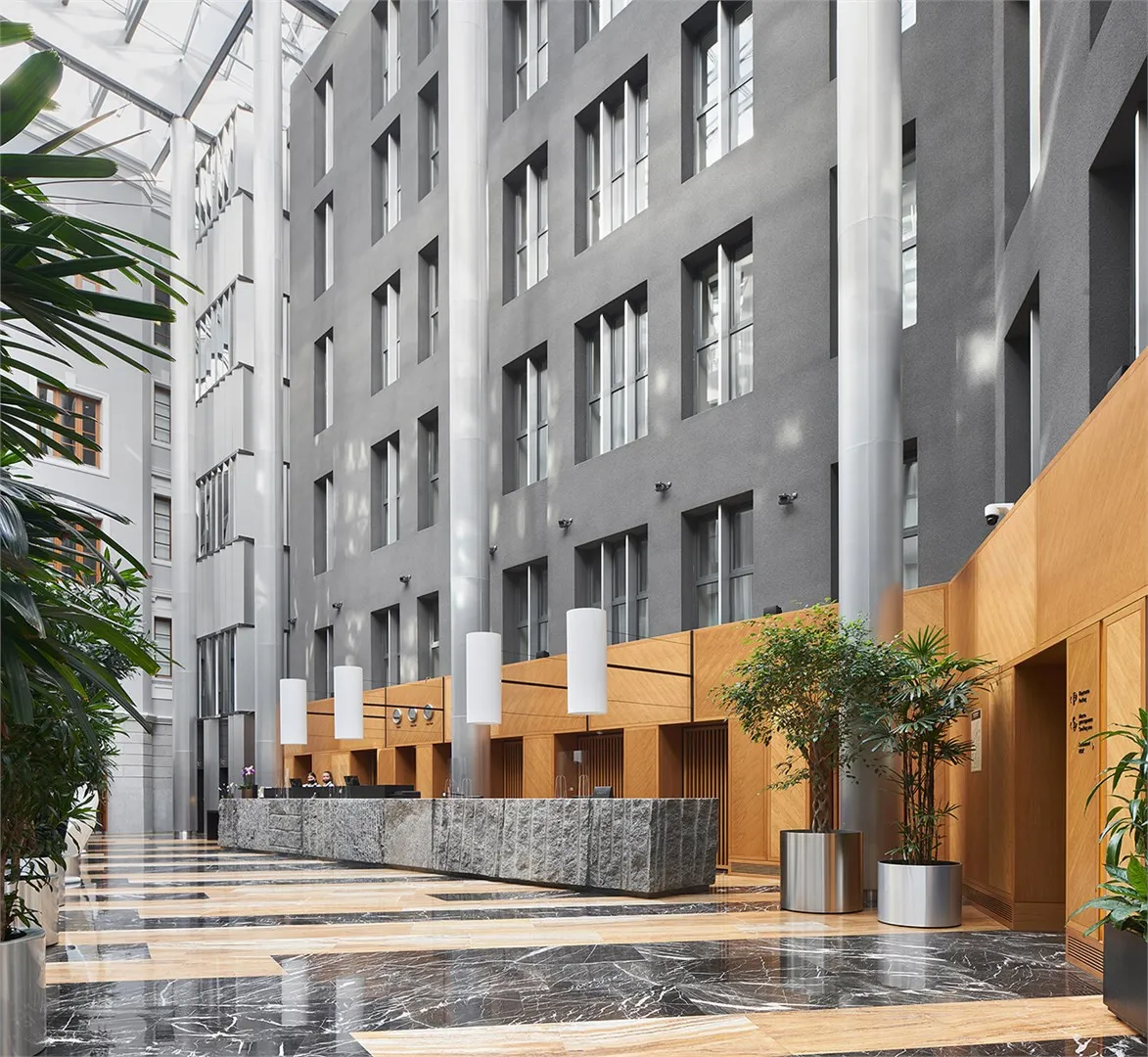 Интерьеры, созданные Михаилом Макаровым и Анастасией Смиренниковой, сочетают эстетику классического Петербурга и современные дизайнерские решения. Светлый атриум, ресторан NOK, бар Sculptors и СПА-салон Nero формируют атмосферу уюта и эстетического наслаждения. В оформлении использованы мрамор, натуральное дерево и авторские предметы декора.