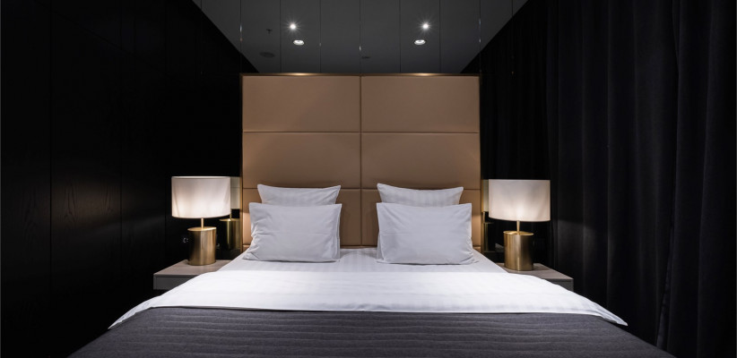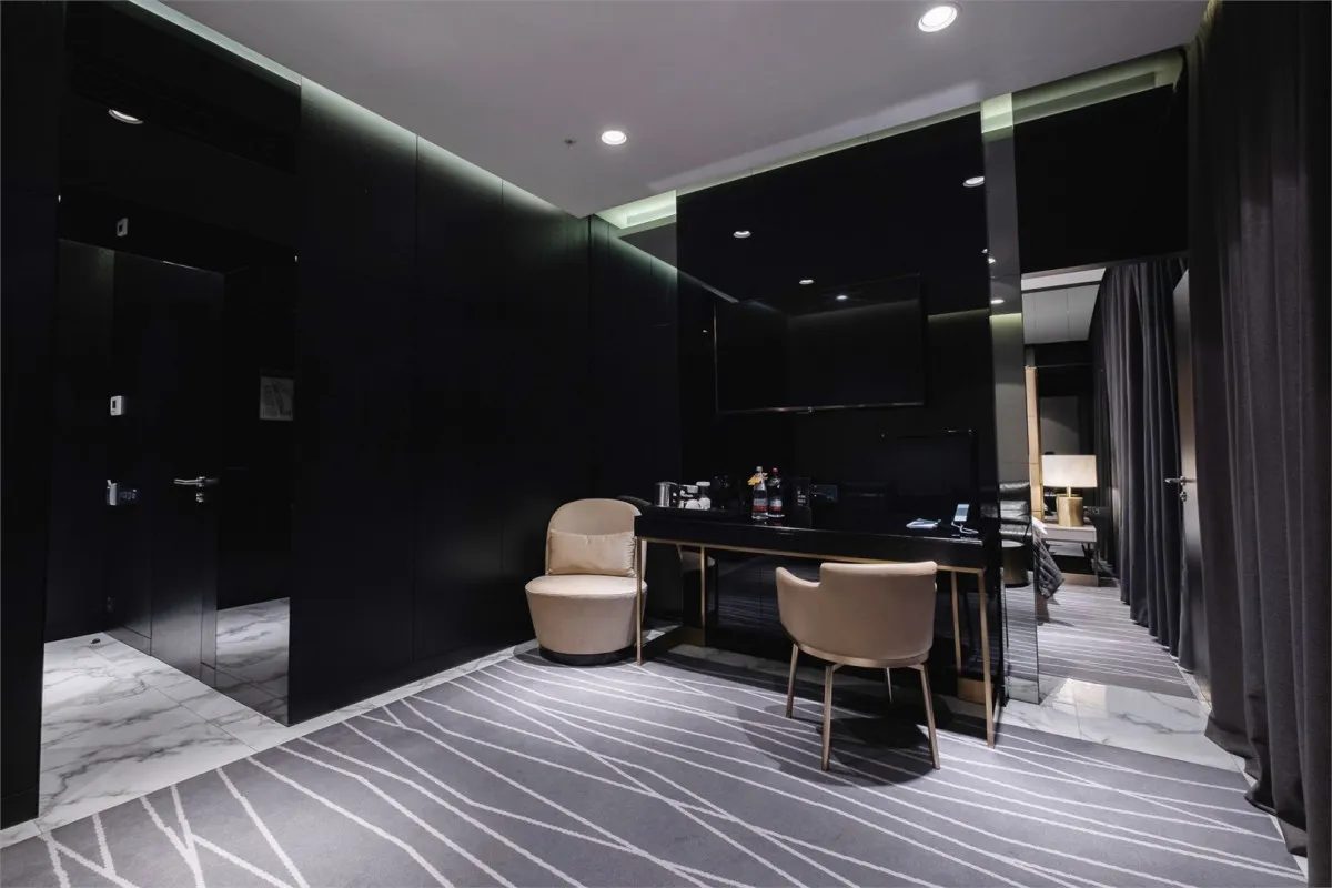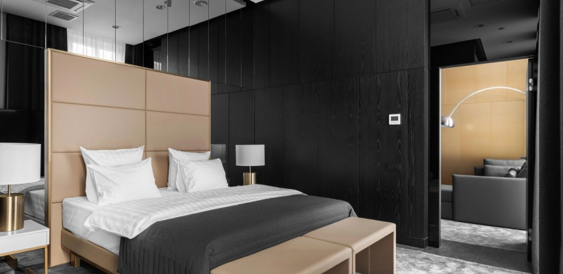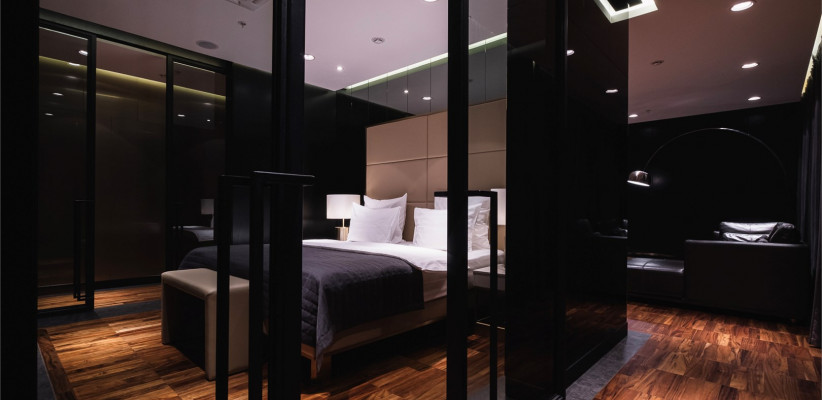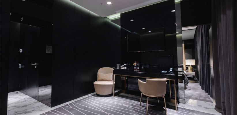 150 м2, двуспальная кровать, отдельная гостиная, переговорный зал, гардеробная, мини-кухня, вид на атриум отеля. Количество гостей: 2