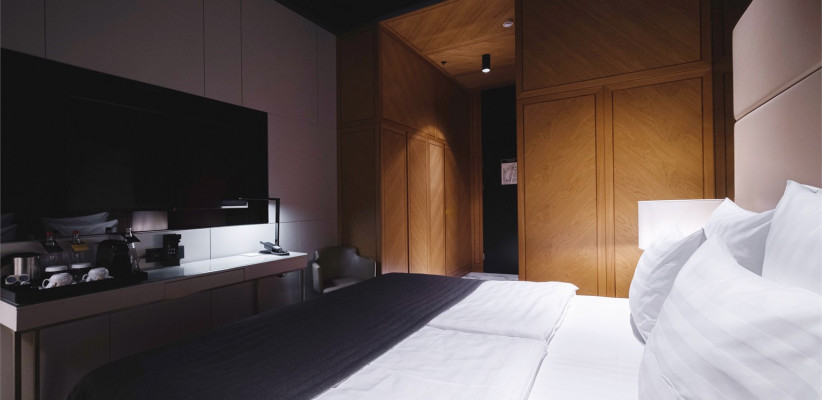 42 м2, двуспальная кровать, отдельная гостиная, вид на атриум отеля. Количество гостей: 2Люкс «Мансарда»