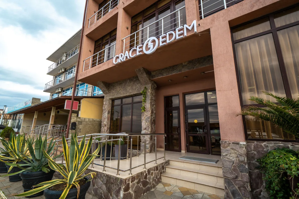 Гостевой дом «Грейс Эдем» расположен в центре Адлера, всего в 50 метрах от побережья Черного моря. Первая береговая линия обеспечивает быстрый доступ к пляжу и открытые виды на морской горизонт. Удачное местоположение позволяет сочетать пляжный отдых с насыщенной городской программой, делая объект привлекательным для семейных поездок и отдыха в компании друзей.