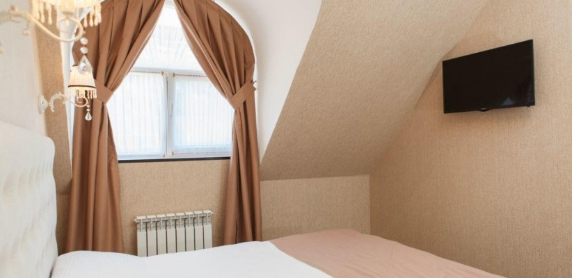 - Стандарт Мансарда (21 кв. м) — однокомнатный номер, расположенный на мансардном этаже, рассчитанный на два основных места и одно дополнительное место. К услугам гостей двуспальная кровать