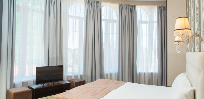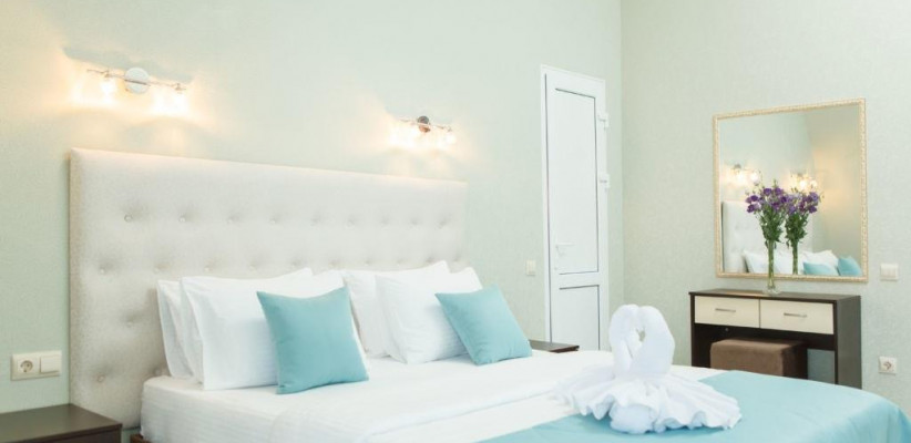 - Делюкс (20 кв. м) — однокомнатный номер с одним окном и видом на город. Однокомнатный номер, рассчитанный на два основных места. В комнате предусмотрено наличие либо одной двуспальной, либо двух односпальных кроватей. Номер без балкона и оборудован всем необходимым для комфортного отдыха: два пуфика, стол-тумба, встроенный просторный шкаф и вешалка для верхней одежды