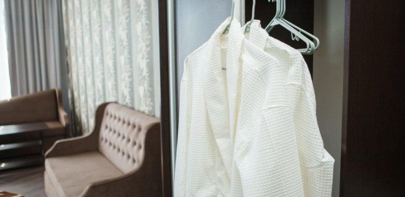 - Люкс (46 кв. м) — люкс без балкона — это двухкомнатный номер, состоящий из двух комнат — спальни, гостиной и просторной ванной комнаты. В номере есть большая гардеробная с полками и местом для хранения чемоданов, двуспальная кровать, два дивана, один из них раскладной, вешалка для верхней одежды, два пуфика