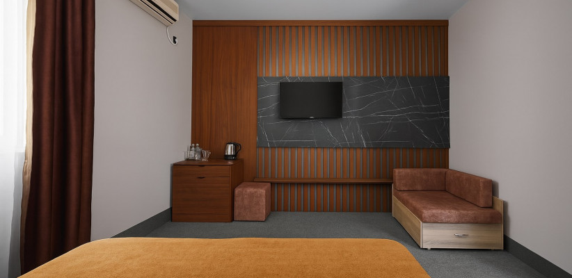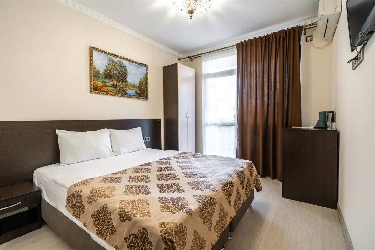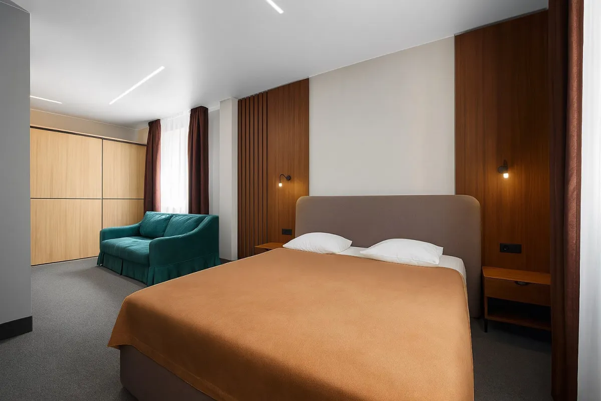 Номерной фонд включает категории различного уровня, что позволяет удовлетворить широкий спектр запросов. Просторные и светлые интерьеры формируют атмосферу спокойствия и уюта, а ежедневная уборка поддерживает высокий уровень комфорта на протяжении всего проживания. В ресторане по утрам сервируются завтраки по системе «шведский стол», создавая приятное и насыщенное начало дня.