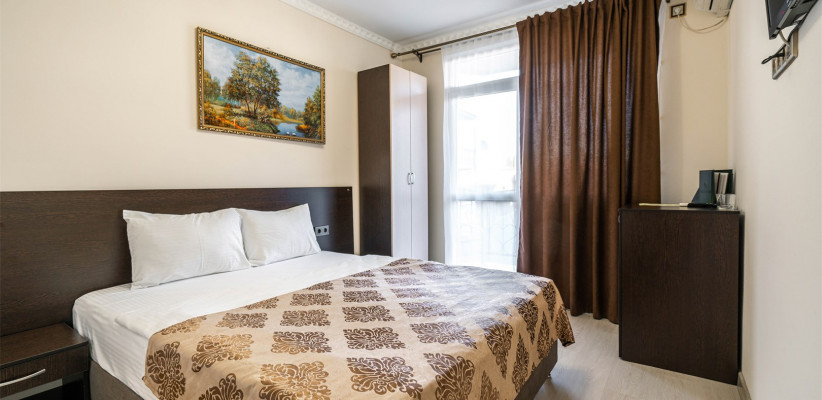 37 м2, двуспальная кровать, гостиная, балкон. Количество гостей: 2 + 2 доп. местаСтандарт без балкона (2 корпус)