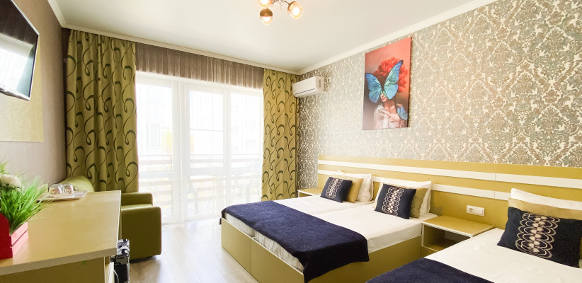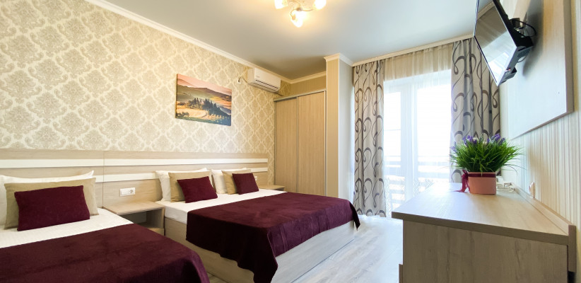 двухкомнатный номер с двухместной и двумя одноместными кроватями, балконНомера Люкс