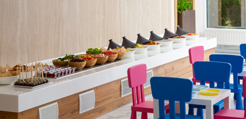 Отель ориентирован на семейный отдых. Для детей предусмотрены игровая площадка и детская комната с возможностью пребывания под присмотром опытных воспитателей. Для семейных пар предусмотрены дополнительные места размещения детей, что делает отдых более удобным и гибким.