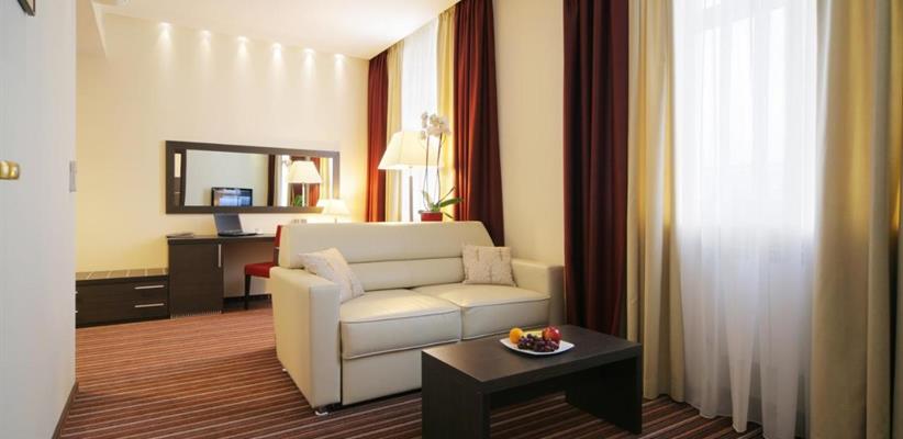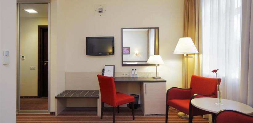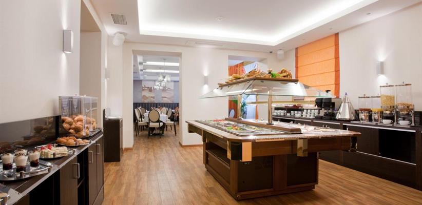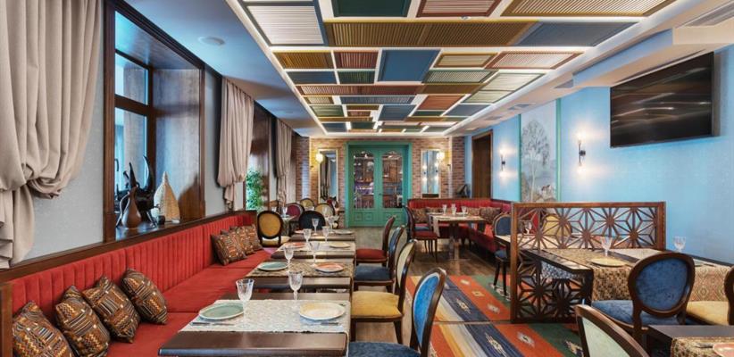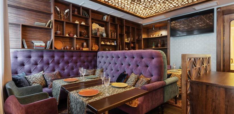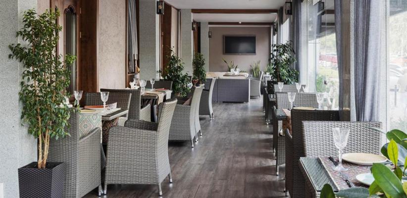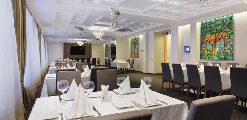 На территории отеля работают ресторан русской и европейской кухни «Де Виль», ресторан грузинской кухни «Хинкальная», лобби-бар, летняя терраса. Завтрак сервируется по системе «шведский стол».