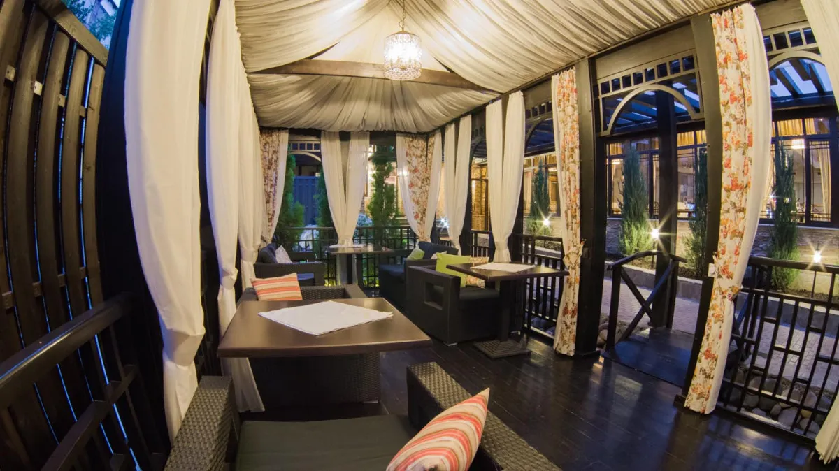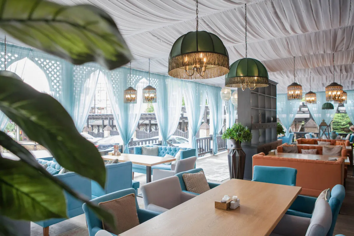 В структуру комплекса входит ресторан с изысканной кухней и залами, оформленными в разных стилях. Ресторан дополняет возможности отеля, предлагая питание и проведение мероприятий в уютной атмосфере.