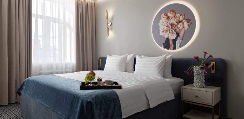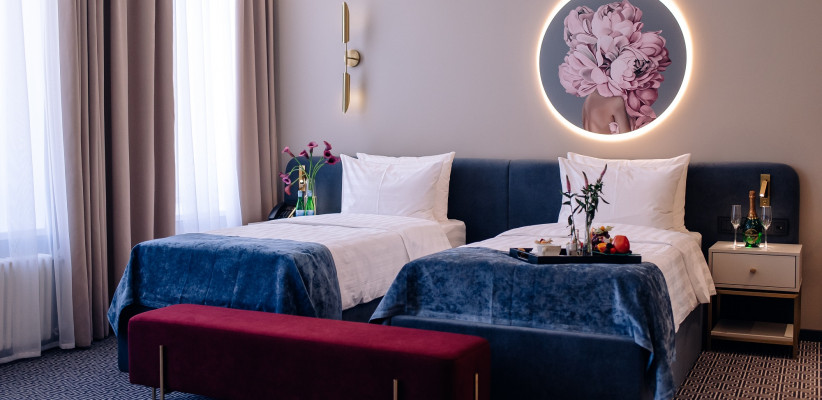 от 30 м2, вид на улицу или во внутренний двор, одна большая двуспальная или две односпальные кровати. Количество гостей: до 4 человекЛюкс