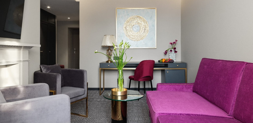 от 38 м2, вид на Большую Морскую улицу, двухкомнатный номер, гостиная с диваном и креслами, спальня с одной двуспальной кроватью. Количество гостей: до 4 человекКлассик для гостей с ограниченными физическими возможностями