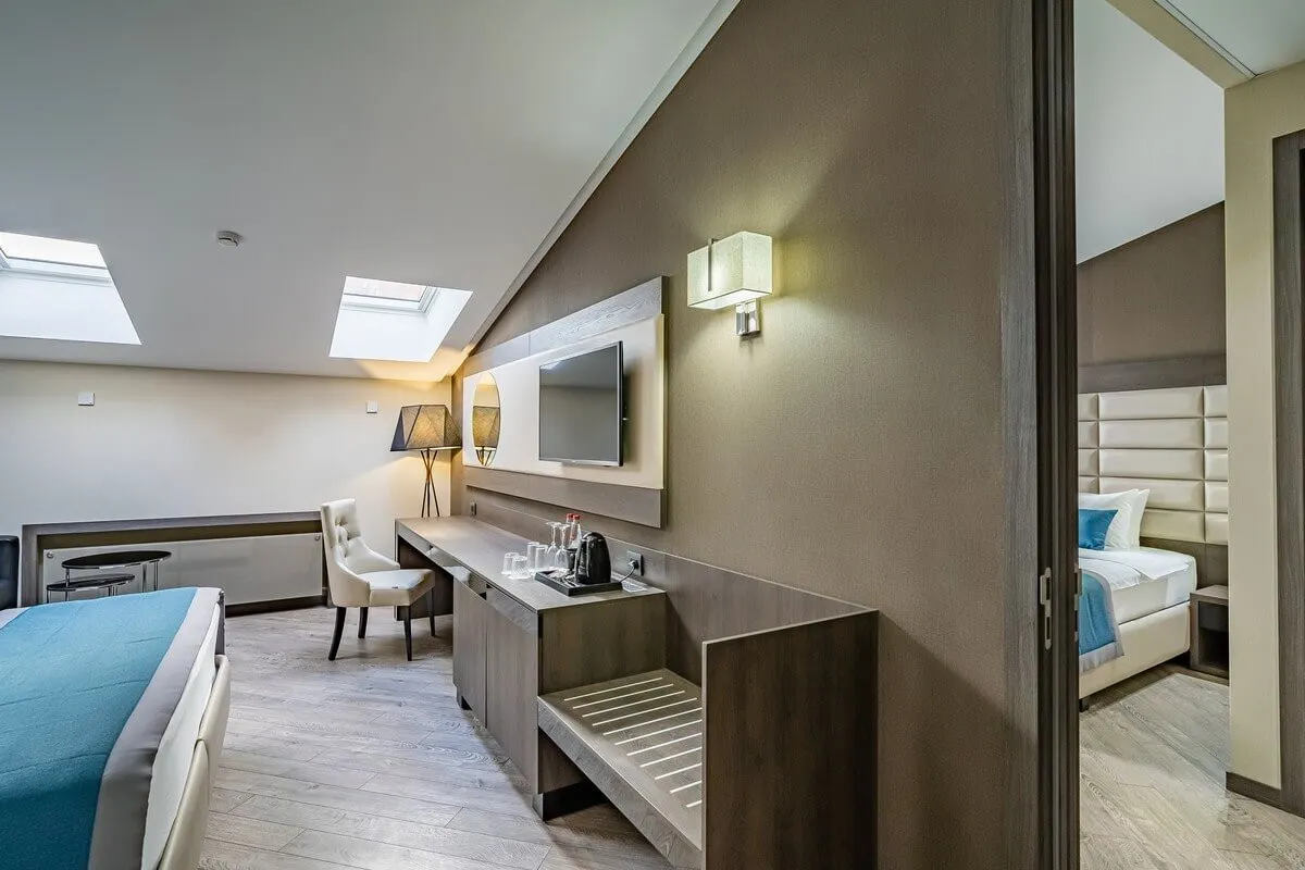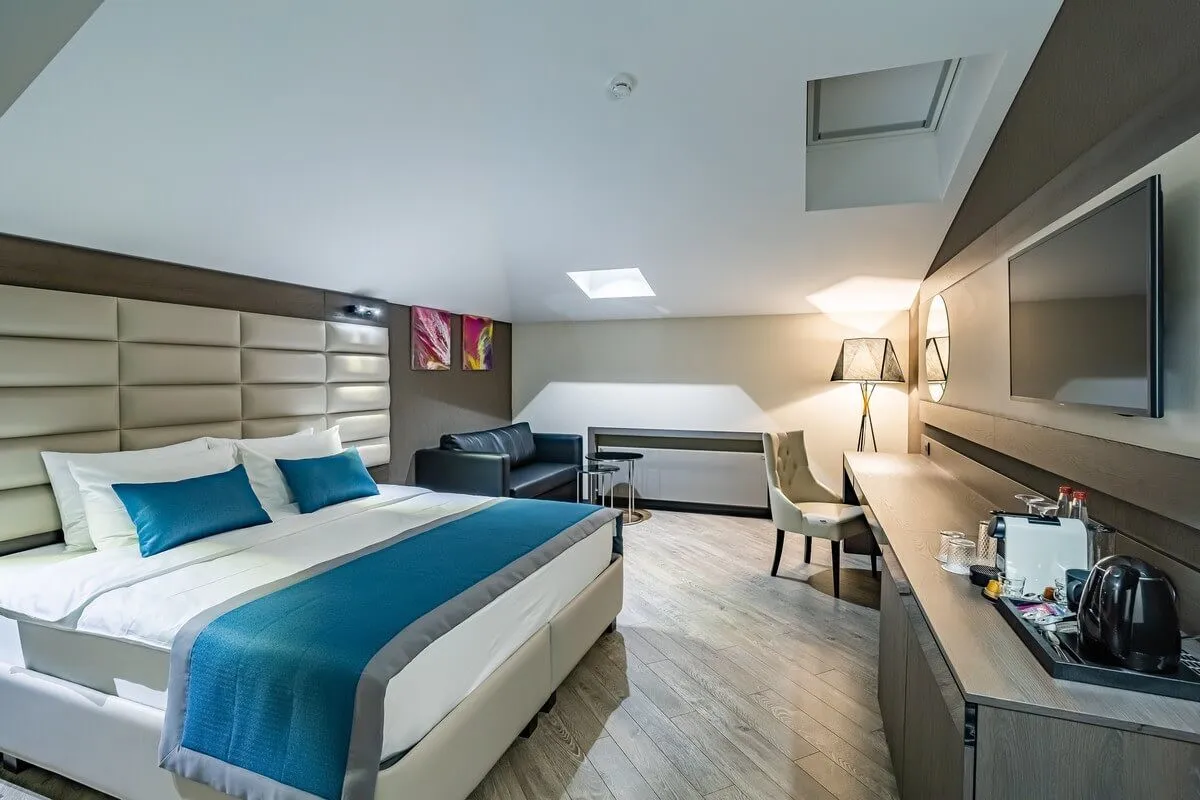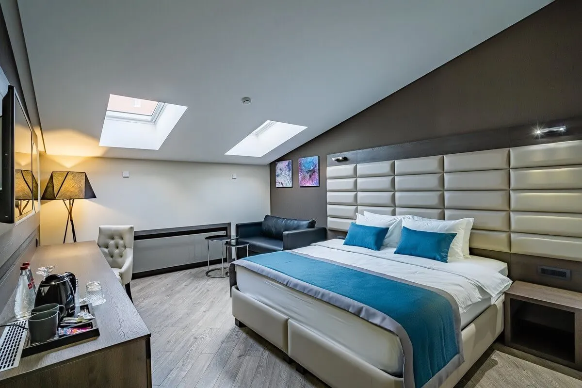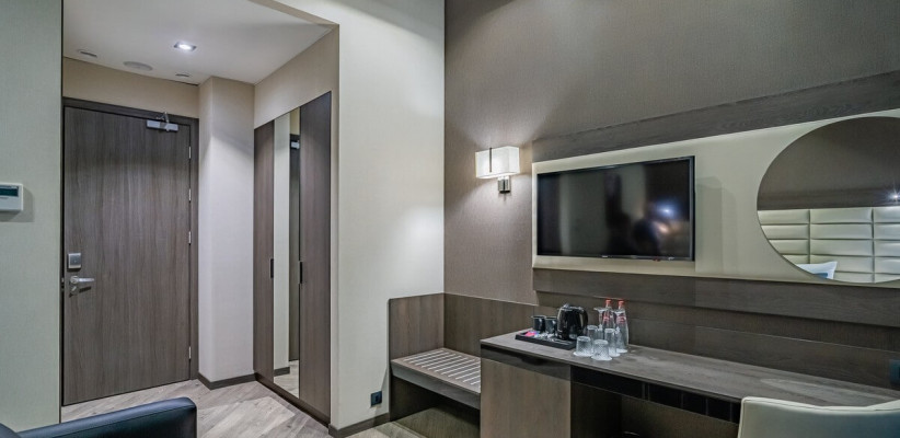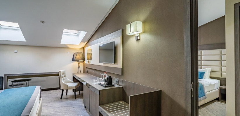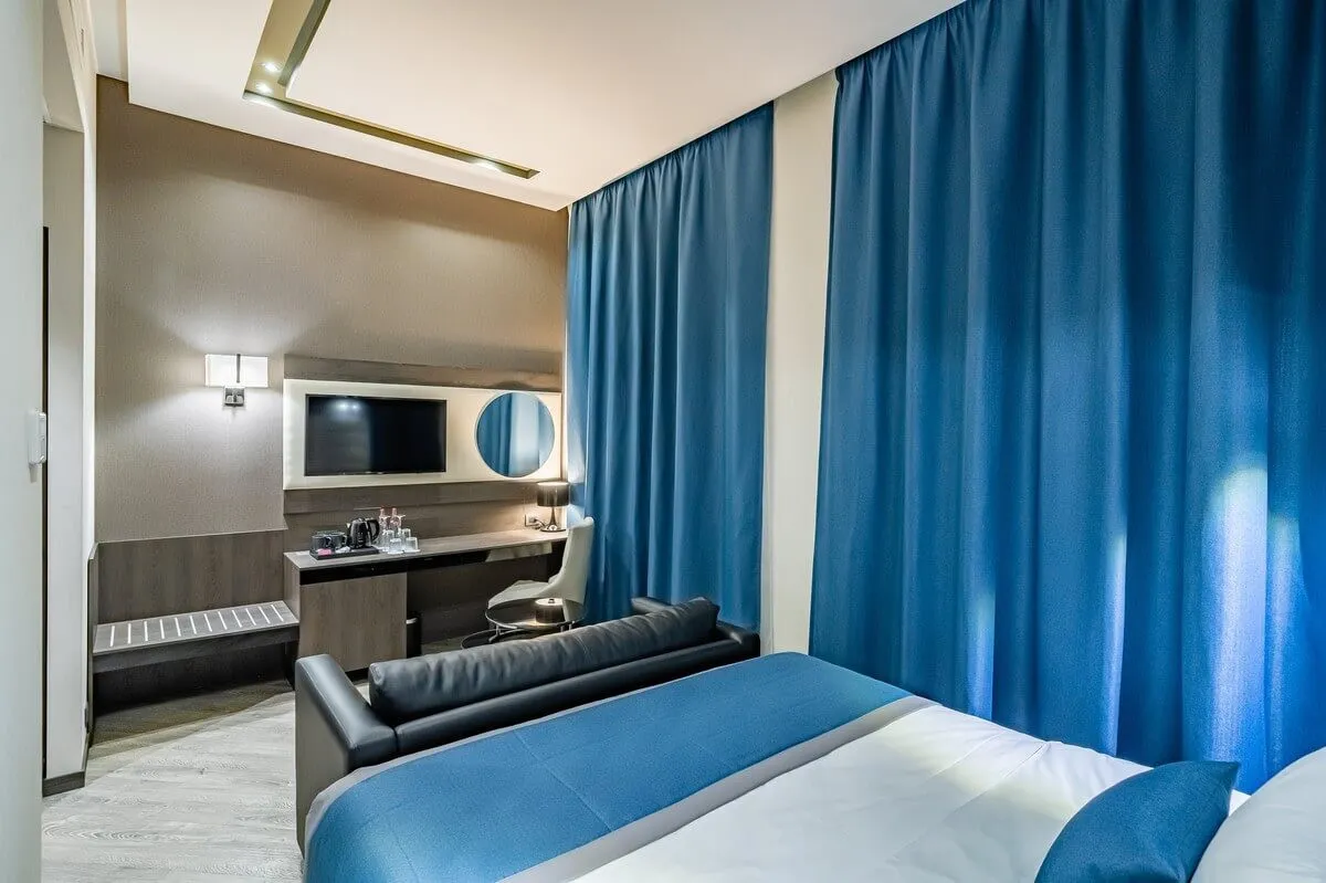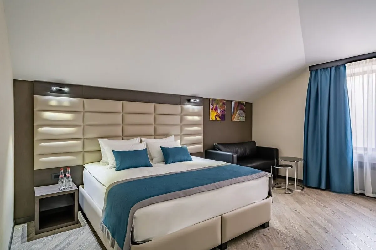 25-28 м2, две односпальные или двуспальная кровать, диван, рабочая зона. Количество гостей: 3.Делюкс